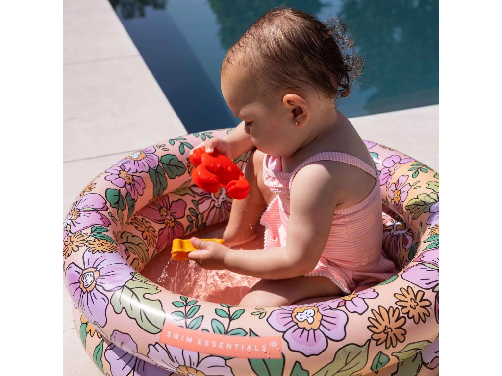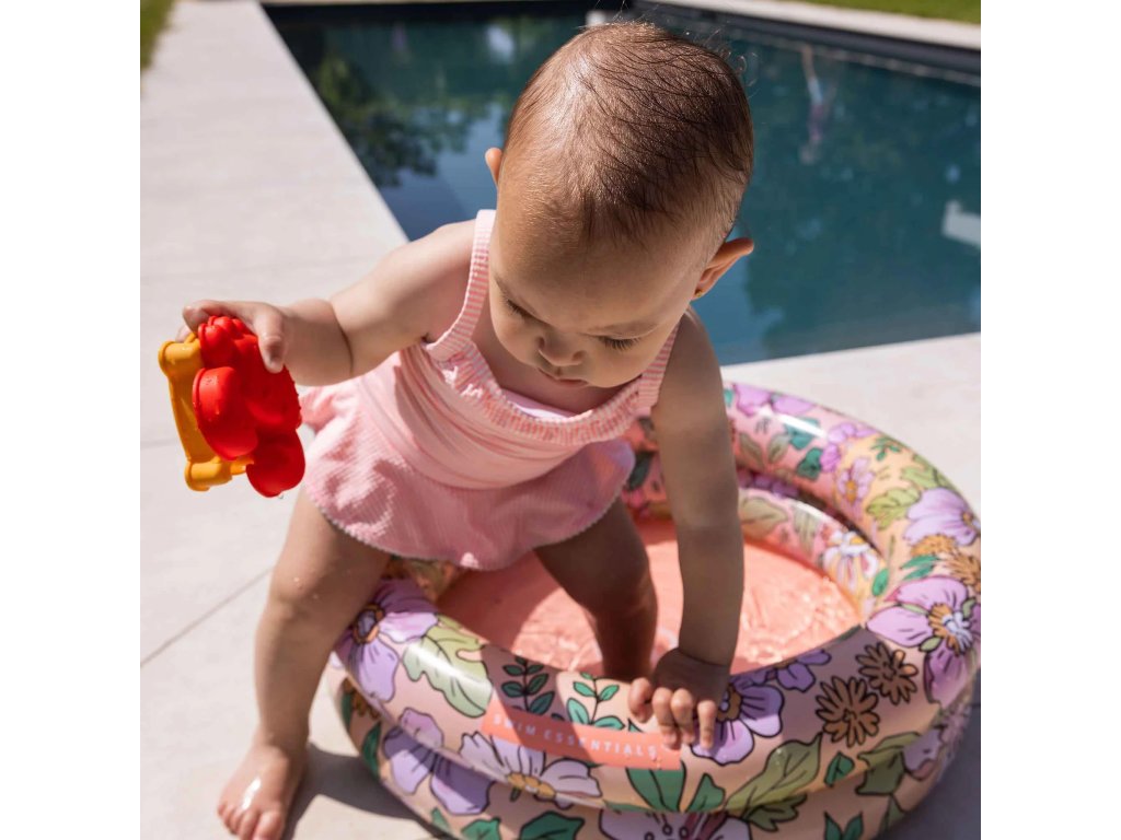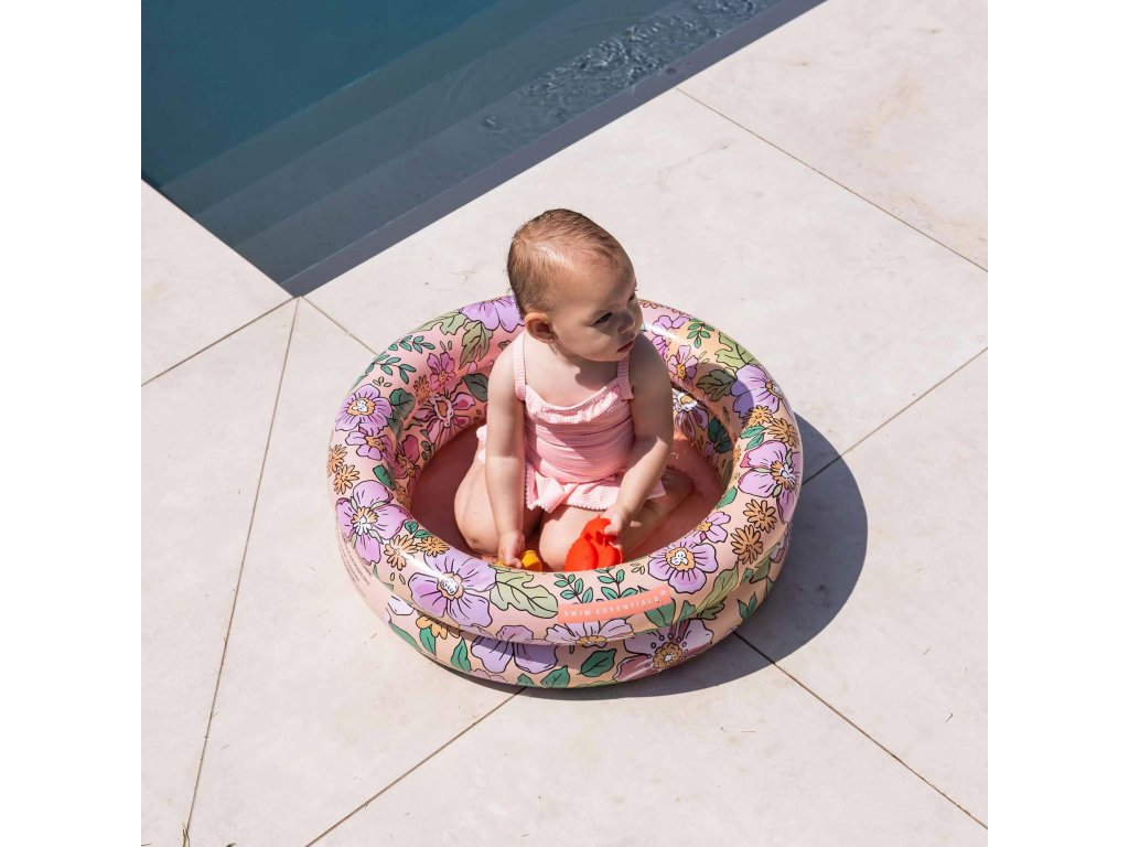 Malý, okrúhly, nafukovací bazén Kvety od Swim Essentials je svojou veľkosťou určený pre malé deti. Je tak vhodný napríklad ako bazén pre bábätká. Priemer kruhového bazéna je 60 cm, má 2 nafukovacie komory a obsiahne približne 15 litrov vody. Vďaka tomu sa stáva bezpečným priestorom na zábavu a schladenie pre vašich najmenších.