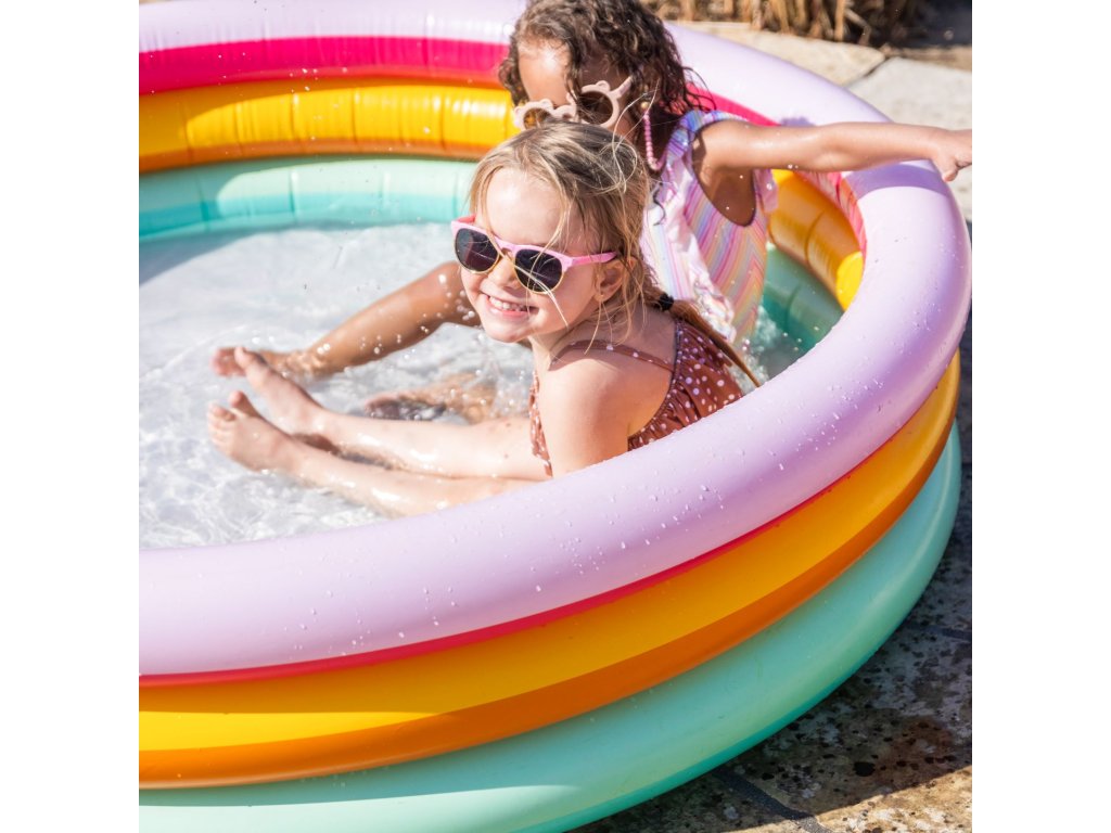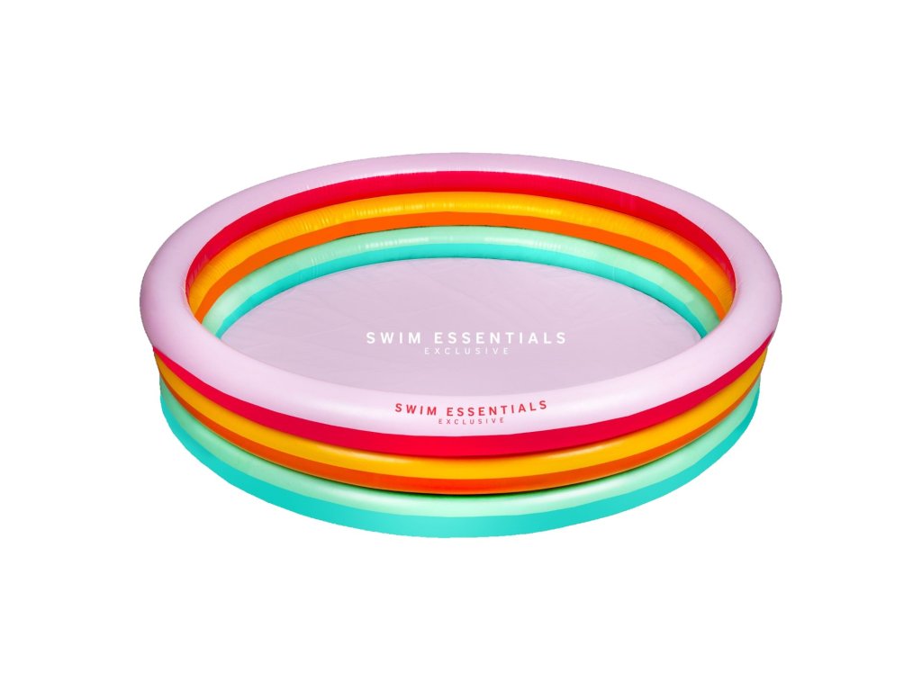 Detský nafukovací bazén Tricolour vo výrazných farbách dúhy od Swim Essentials je svojou veľkosťou určený približne pre deti od 3 rokov. Jeho priemer je 150 cm a zmestí sa do neho až 150 litrov vody. Detičkám tak poskytuje dostatočný priestor na vodné radovánky a letné osvieženie. Môžu si do neho nahádzať množstvo hračiek do vody a zábava sa môže začať.