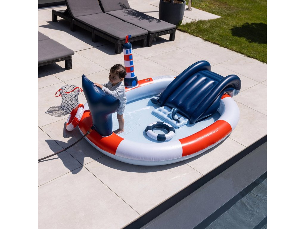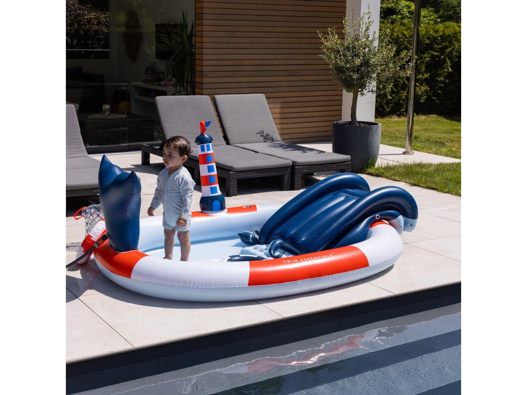 Detský nafukovací bazén so šmykľavkou od Swim Essentials s námorníckymi motívmi sa stane zdrojom nekonečnej vodnej zábavy pre vaše deti. Je to skvelý nafukovací bazén aj vodné ihrisko na záhradu a napríklad aj na detskú oslavu. Je veľký 210 x 150 cm, má 7 nafukovacích komôr a zmestí sa doňho až 230 litrov vody.