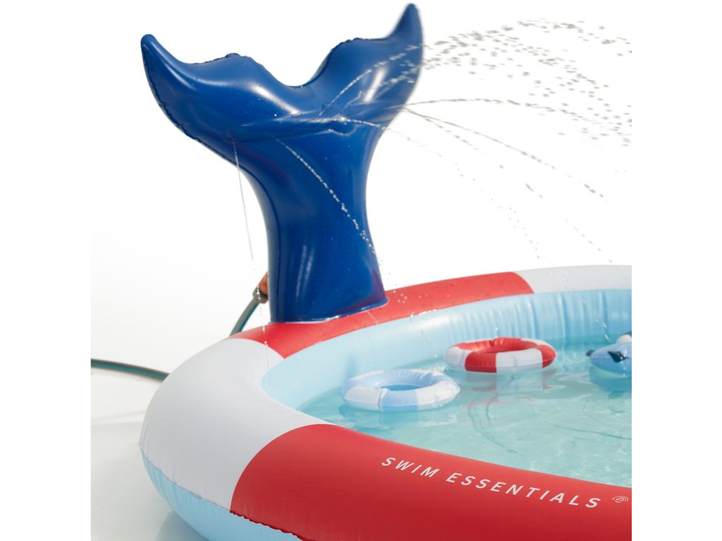 Bazén so šmykľavkou však obsahuje aj rozstrekovač na chvoste veľryby. Ten je možné napojiť na vašej záhradnej hadici s redukciou. Vďaka striekajúcej vode budú mať vaše deti túto vodnú zábavu ešte radšej. Nechýba ani malá šmykľavka s motívom veľryby a rôzne ďalšie nafukovacie doplnky – 3 kolesá a 5 morských zvieratiek.
