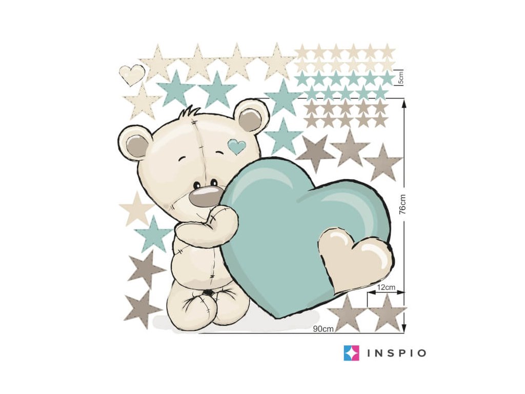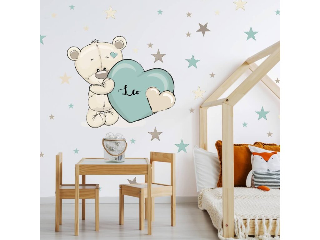 INSPIO nálepka medvedíka so srdiečkom a s menom do detskej izby. Personalizované nálepky pre deti.