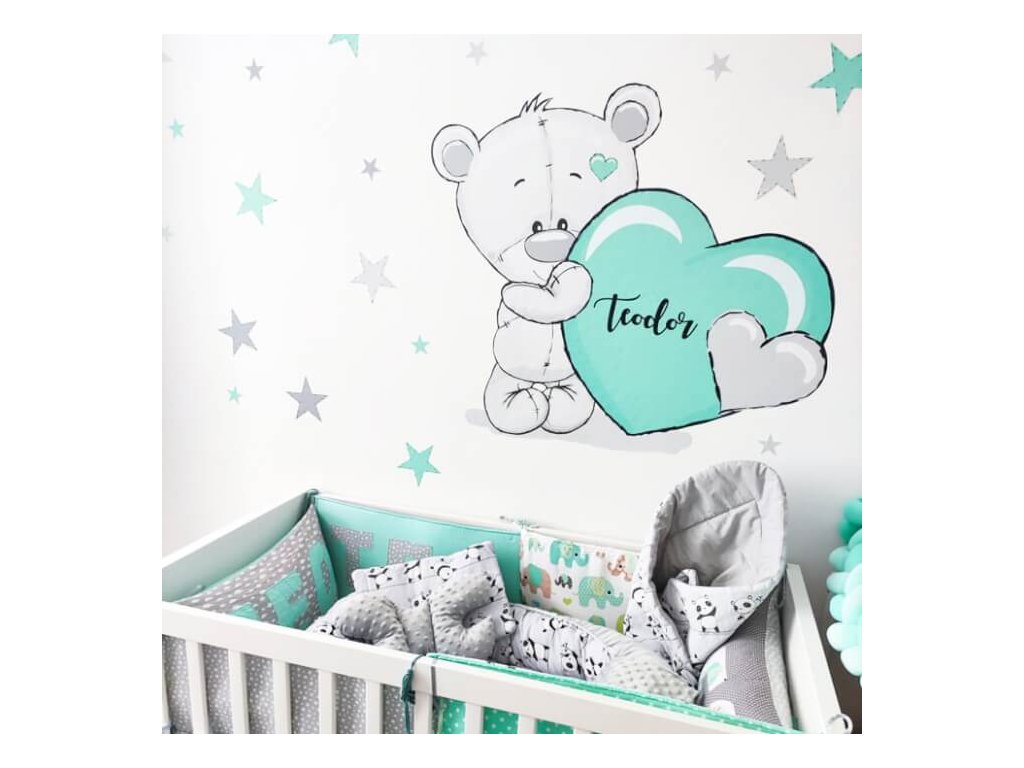 Nálepka na stenu - Macko s hviezdami a menom dieťaťa