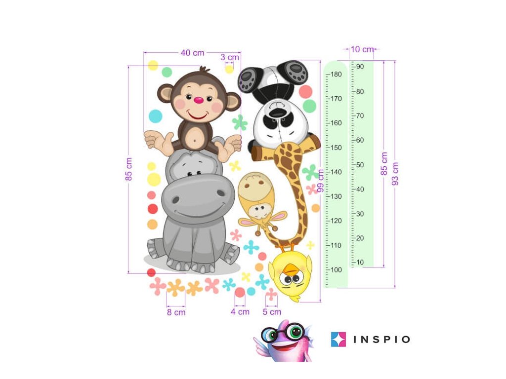 Nálepka na stenu - Meter a Veselé zvieratka (180cm)