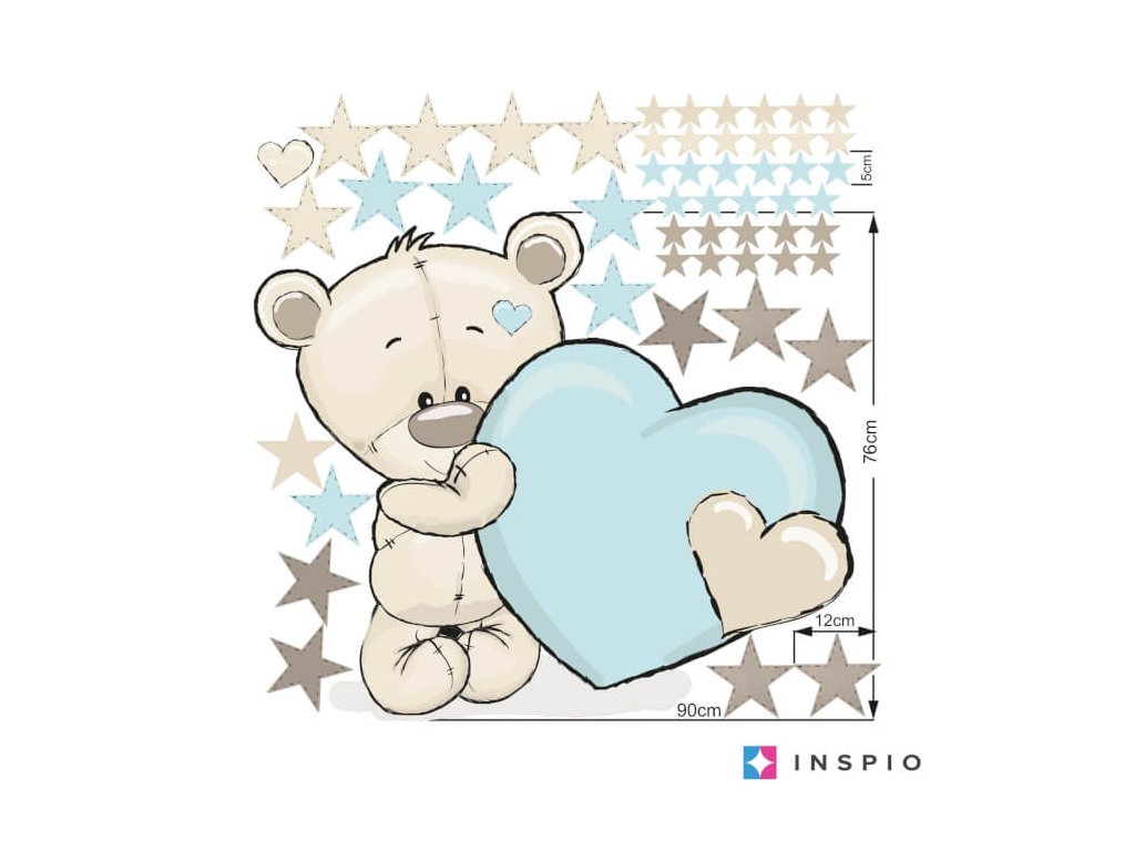 INSPIO nálepka medvedíka so srdiečkom a s menom do detskej izby. Personalizované nálepky pre deti.