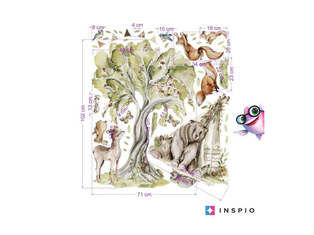 Nálepka na stenu Woodland - Čarovný les s veselými zvieratkami