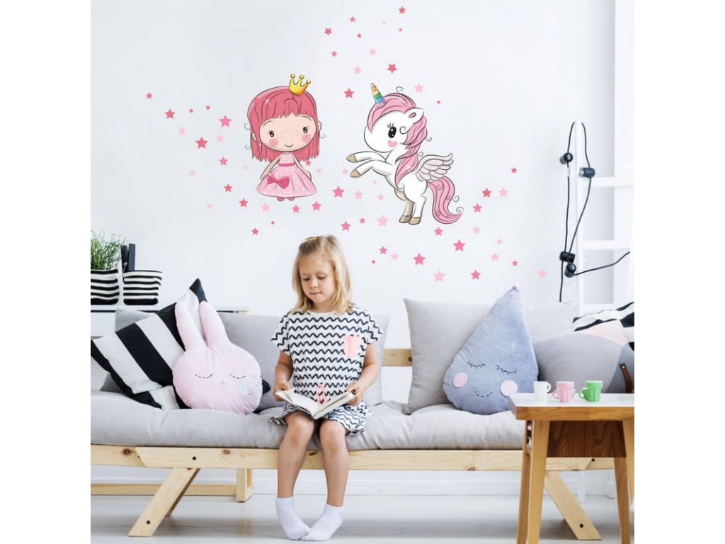 Nálepka na stenu pre dievčatká, ktoré majú v láske jedinečné jednorožce.