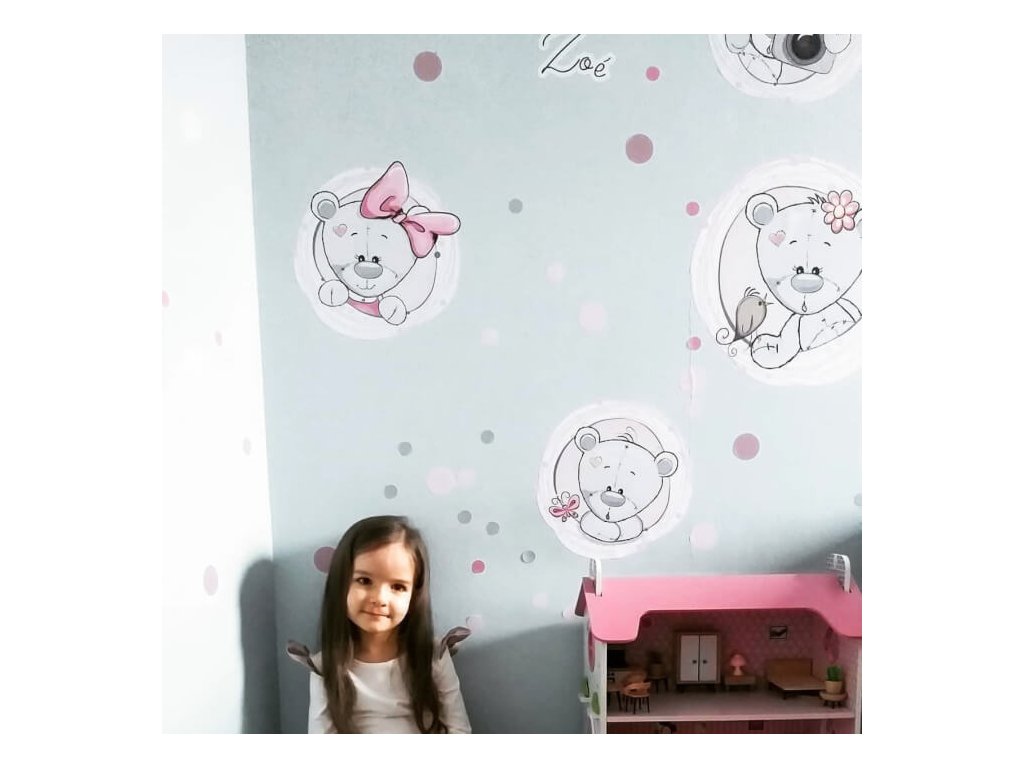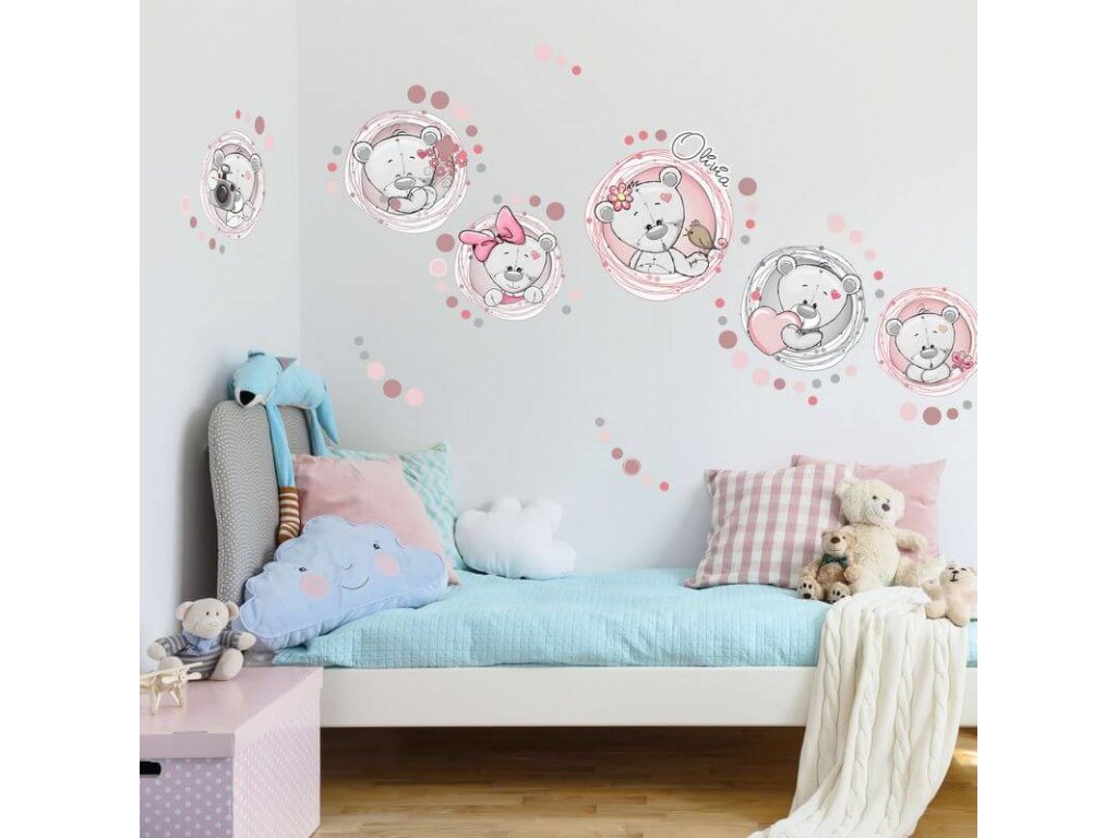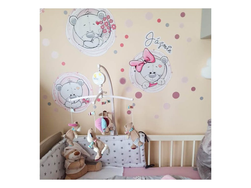 Detské textilné nálepky INSPIO - Ružoví mackovia pre dievčatká krásne držia aj na drsnej stene.