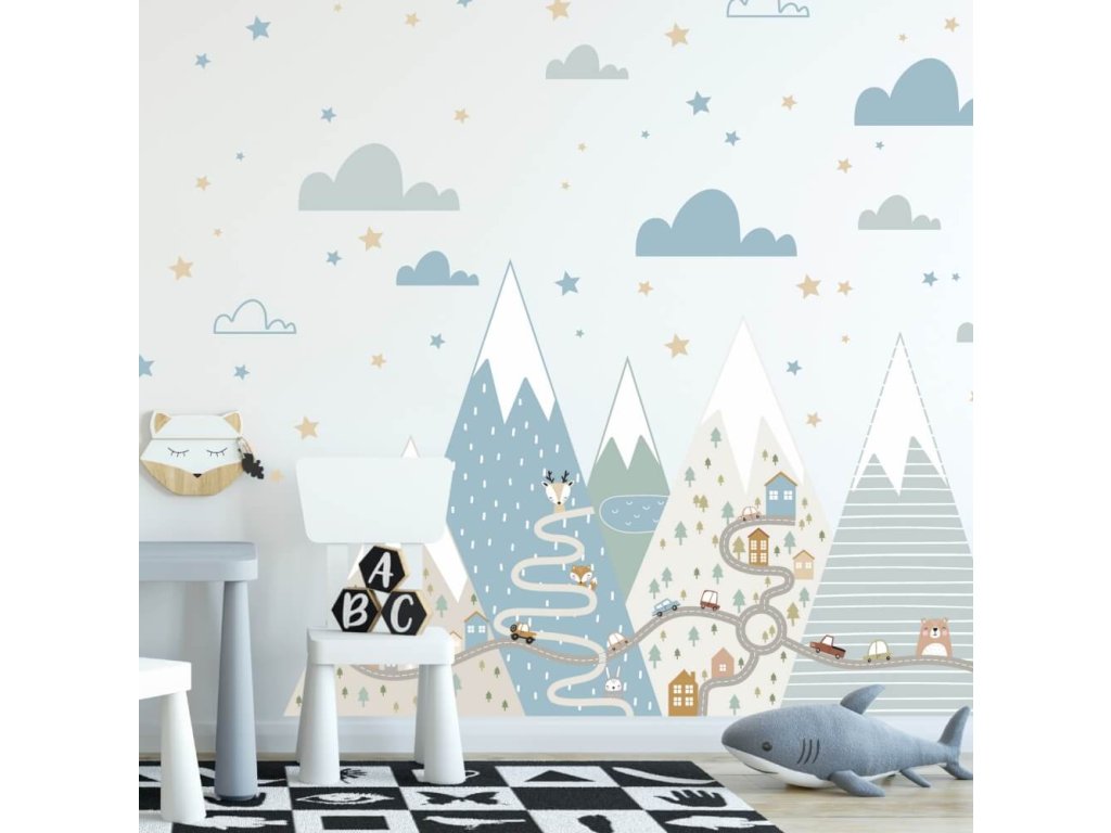 Textilné nálepky na stenu INSPIO sú prelepiteľné a umývateľné. Rozprávkové kopce sa hodia do každej izbičky.