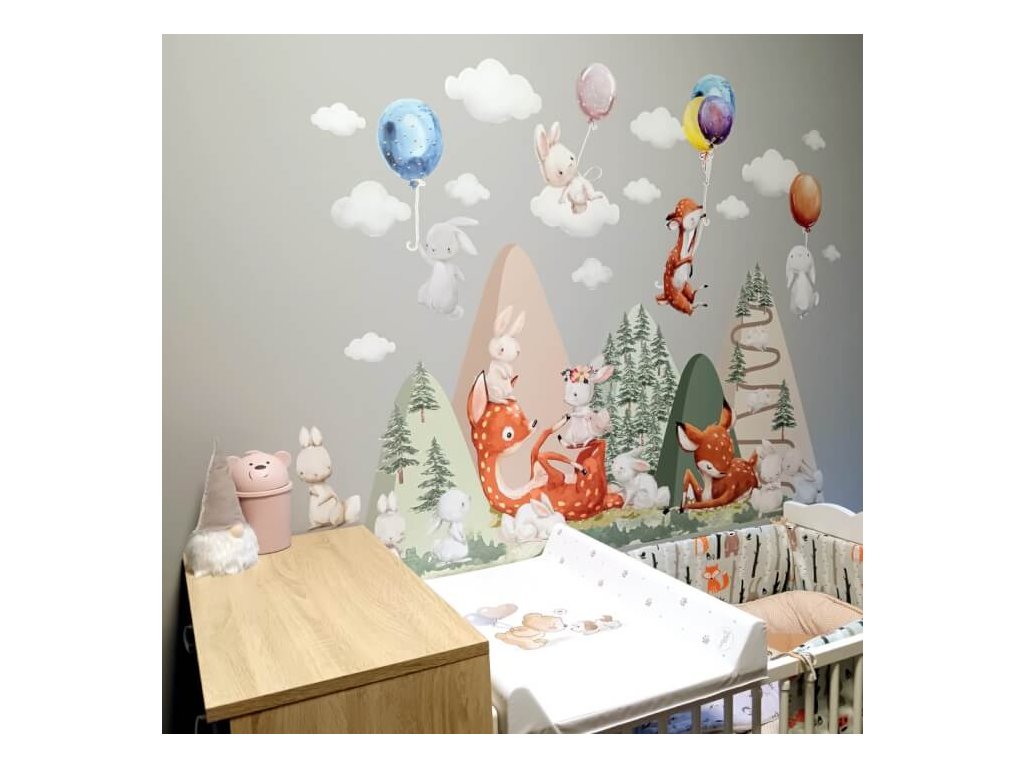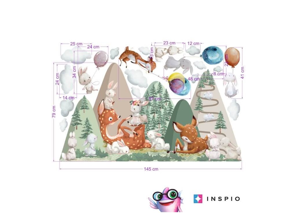 Nálepky na stenu pre deti - Kopce so srnkami a zajačikmi