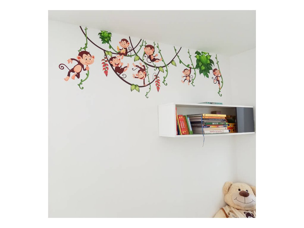 Dobrodružná nálepka s opičkami priamo z džungle do veselej detskej izby.
