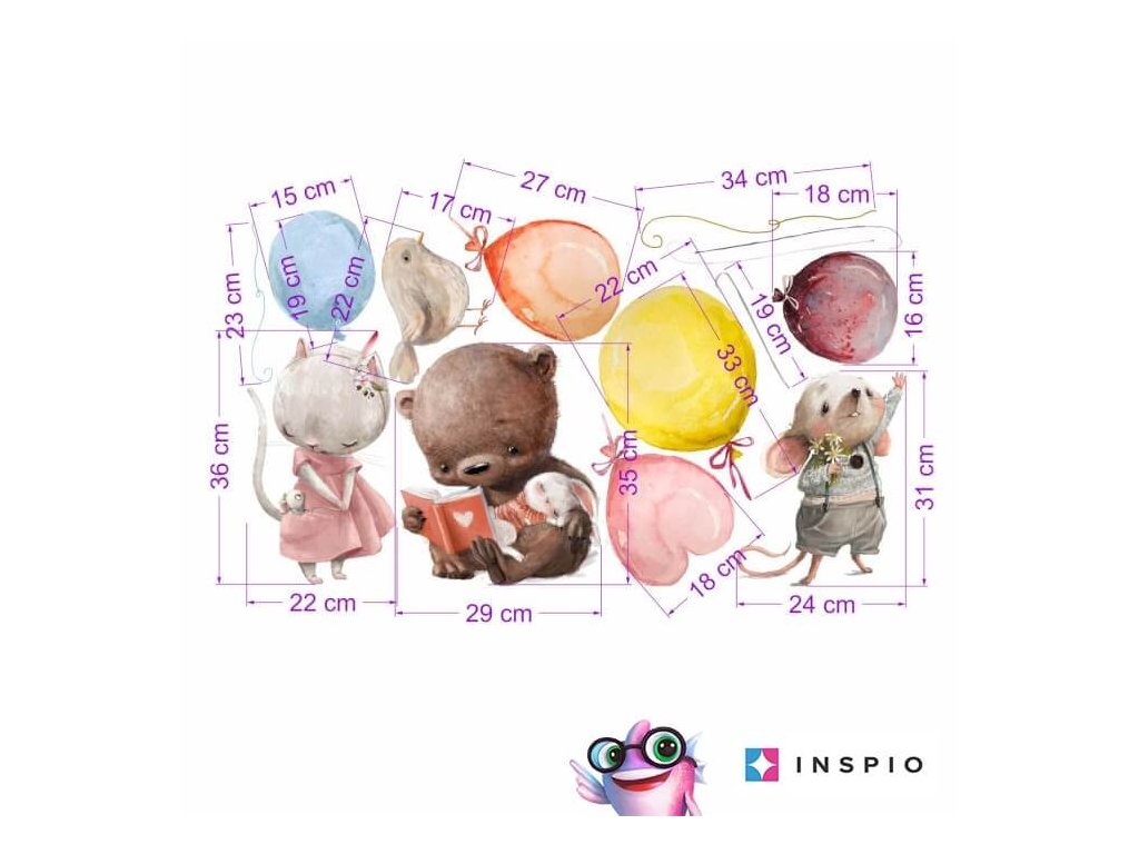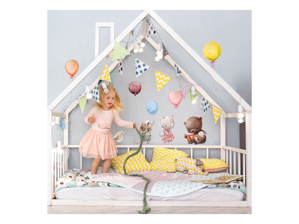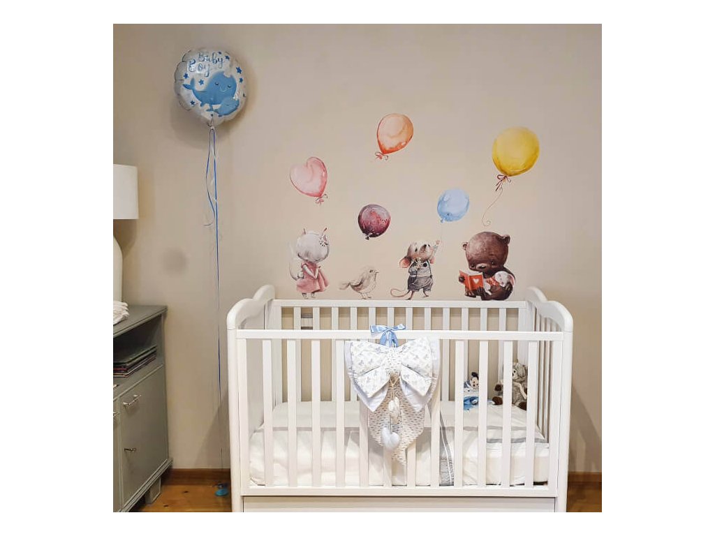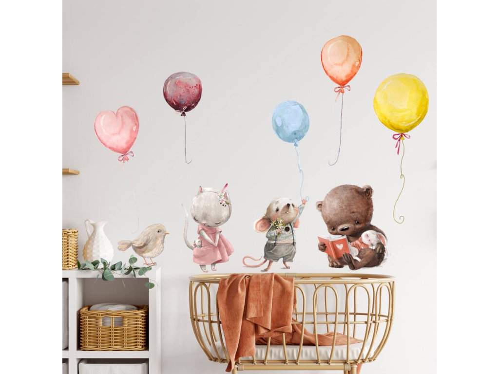 Nálepky nad postieľku - zvieratká s balónmi v pastelových farbách