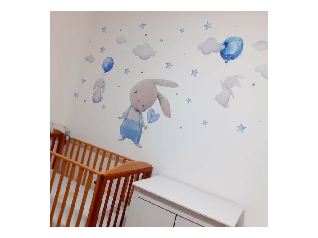 Nálepky pre chlapčeka - Zajačiky lietajúce s balónmi