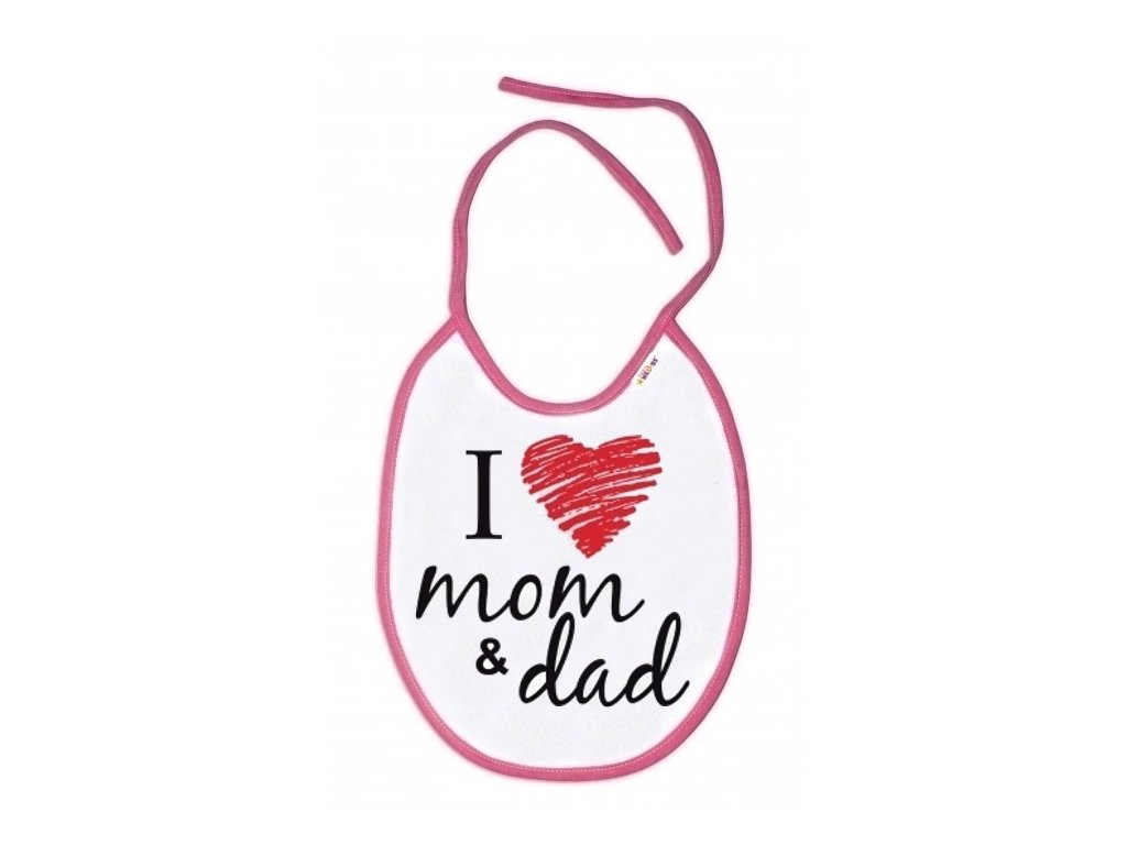 Nepremokavý podbradník I love mom & dad, 24 x 27 cm - ružový