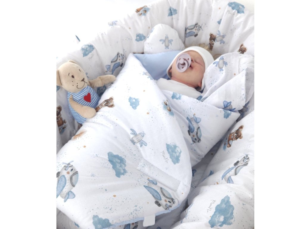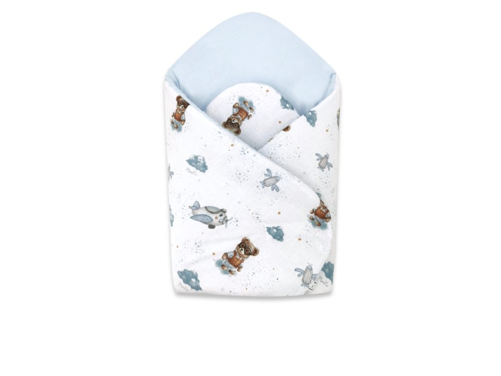 Novorodenecká zavinovačka, bavlna, Méďa pilot - biela, modrá