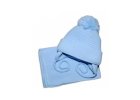 Baby Nellys Pletená čepice s šálou a rukavičky 3v1, STAR - sv. modrá