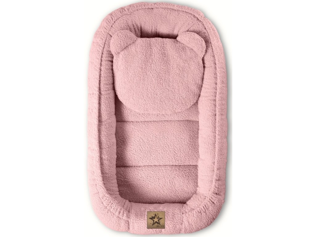 Obojstranné hniezdočko s vankúšikom Teddy Bouclé - pudrovo rúžová