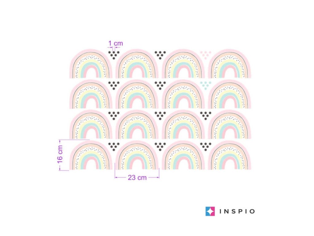Pastelové dúhy s bodkami - nálepky na stenu pre dievčatá