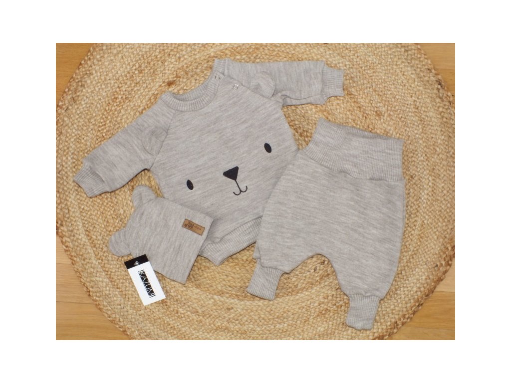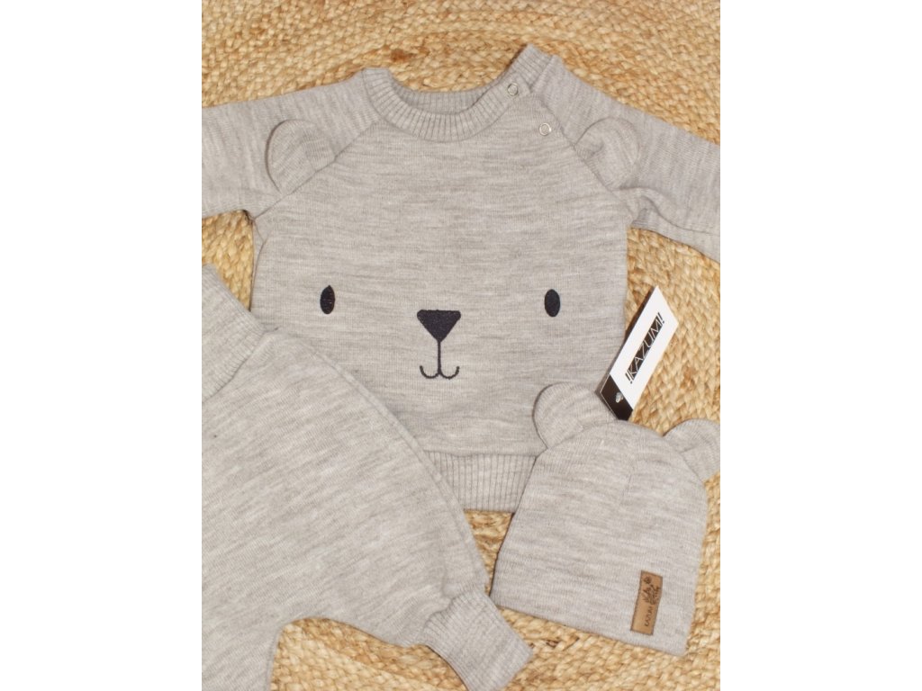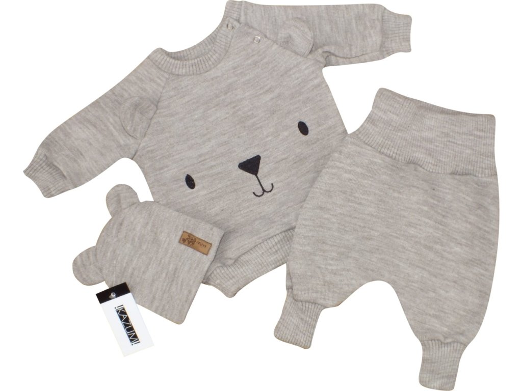 Pletená kojenecká sada 3D Medvídek, svetřík, tepláčky + čepička Kazum, béžová
