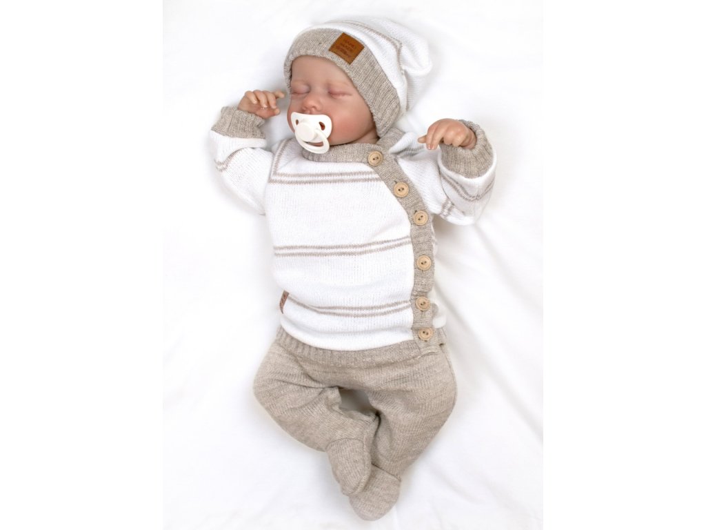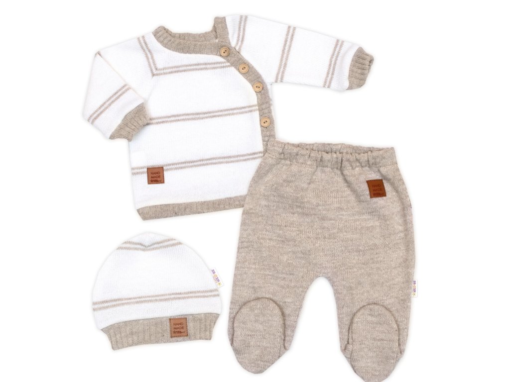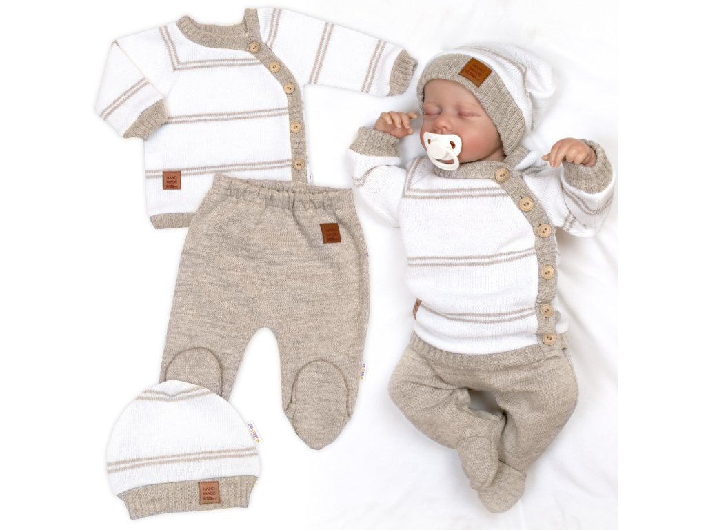 3 dílná pletená sada pro miminko s jemným proužkem od Baby Nellys ČR.