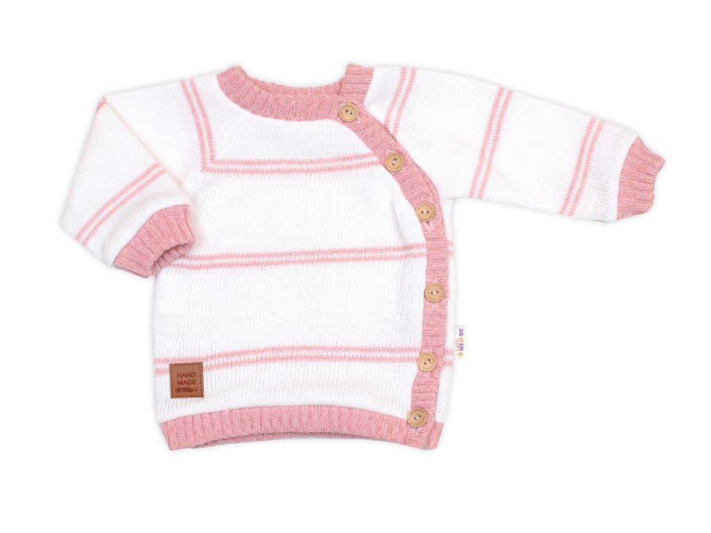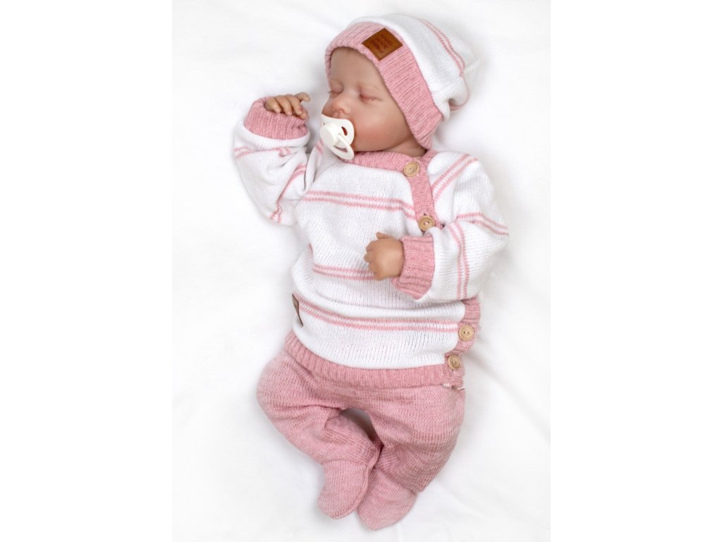 Pletená sada pro miminko s jemným proužkem 3D, lux - růžová, bílá