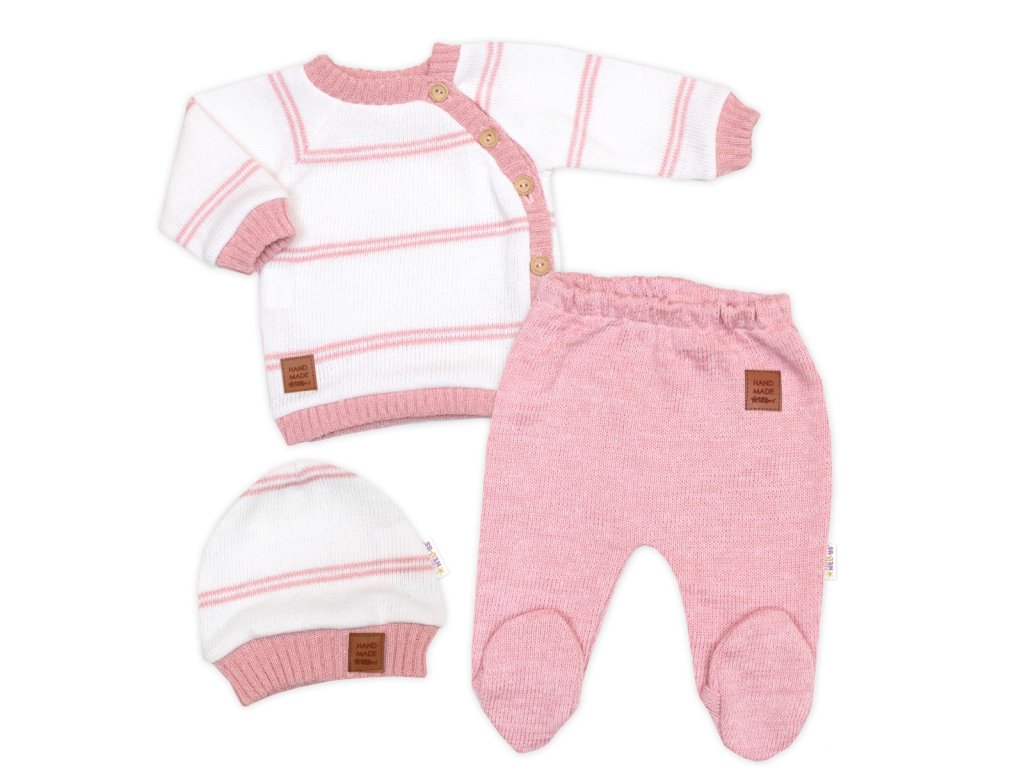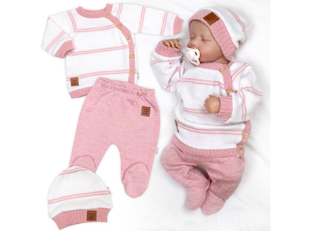 3 dílná pletená sada pro miminko s jemným proužkem od Baby Nellys ČR.