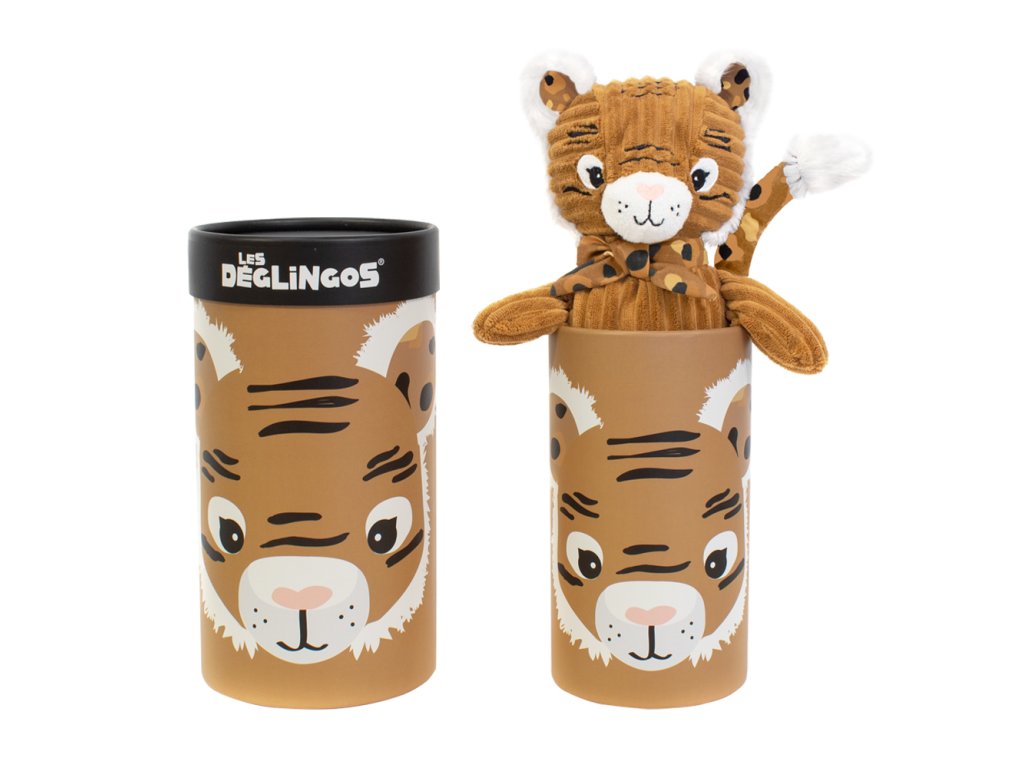 Plyšový Tiger 33 cm v darčekovej krabičke Darček pre bábätko Plyšový Tiger značky Les Déglingos zabalený v darčekovej krabičke je ideálny darček k narodeniu dieťatka. Hračka je z mäkkučkého plyšu, vhodná do postieľky na spanie aj bezpečné hranie pre bábätká. Dĺžka 33 cm.Trendové a kvalitné kolekcie Les Déglingos obmieňajú svoje kolekcie, vzory a látky, aby ponúkali stále jemnejšie a kvalitnejšie produkty. V novej kolekcii vždy nájdete konkrétne zvieratko v podobe plyšáka, maznáčika, senzorickej hračky, batožiny a iných doplnkov.