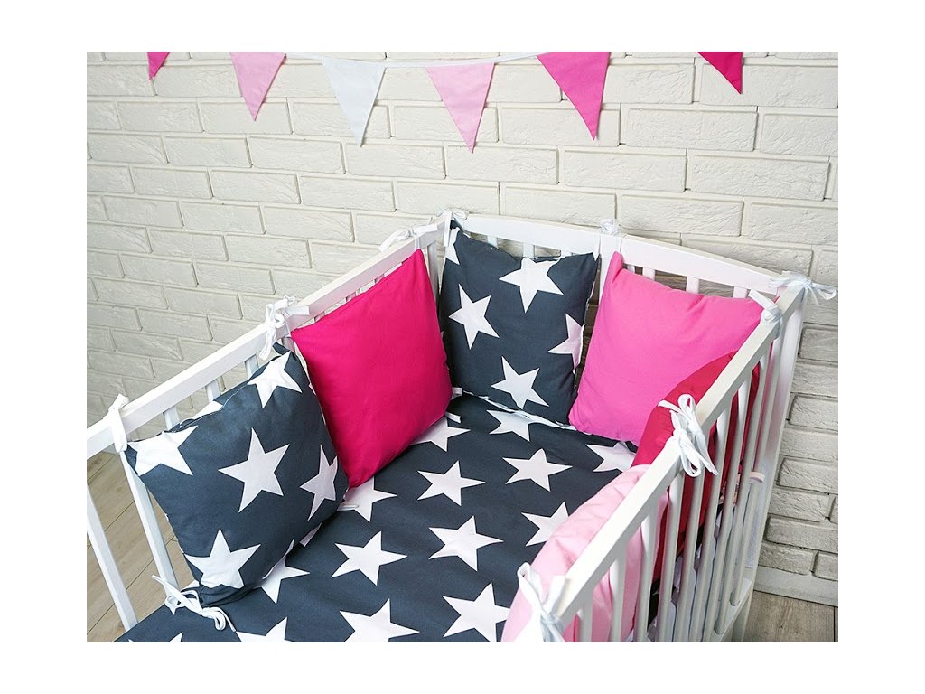 Polštářkový mantinel s povlečením - hvězdy, černá/malinová, 120x90 cm