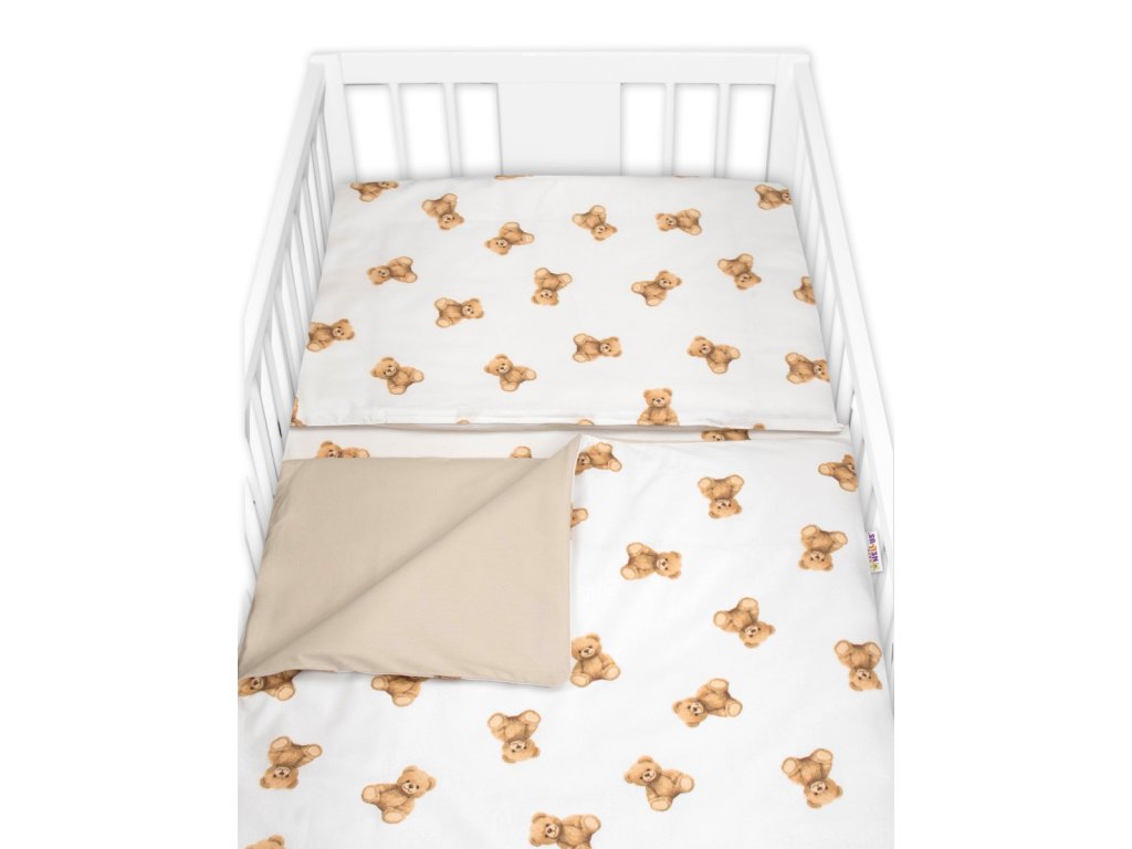 Povlečení do postýlky, bavlna, 2D sada, Míša - bílá s potiskem