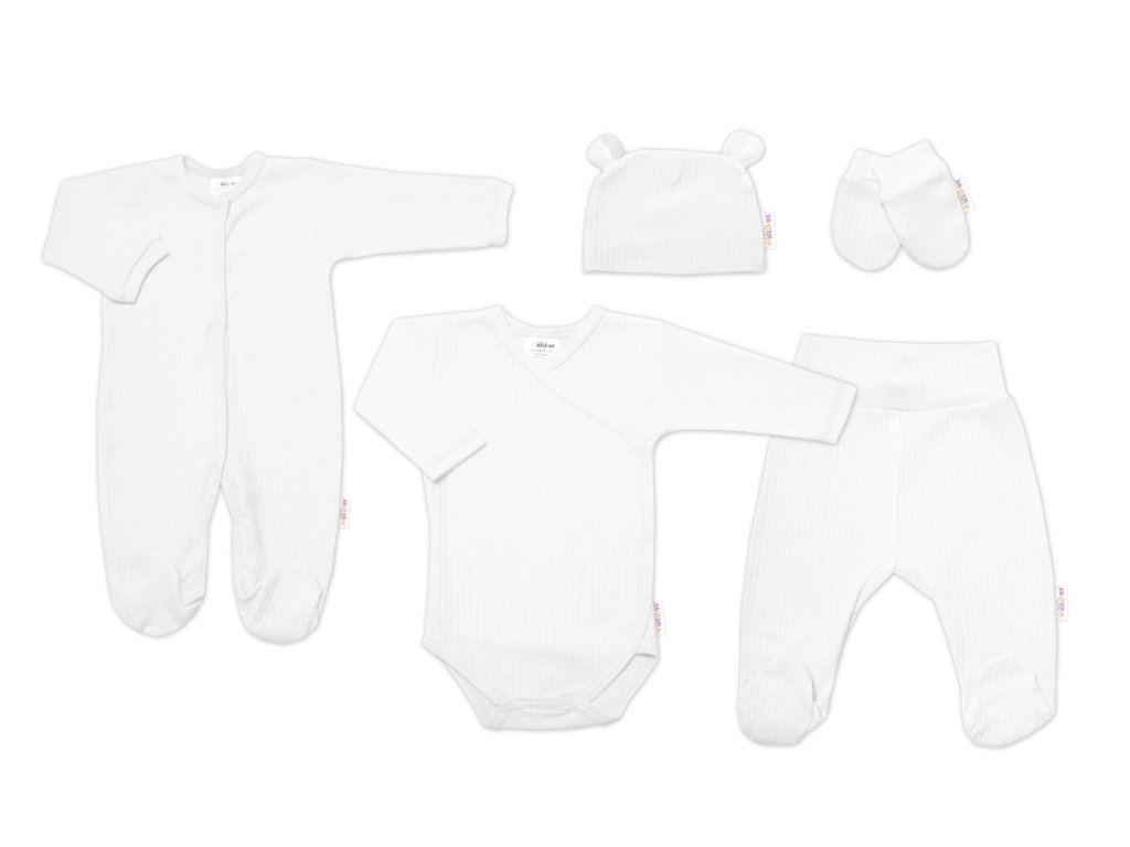 Praktická 5-dílná žebrovaná soupravička do porodnice Baby Nellys BOY, bílá