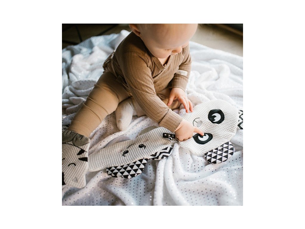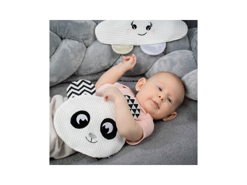 Šuštiaca hračka je ideálny spôsob, ako formou hry stimulovať rozvoj detských zmyslov. Je to hračka a plyšák v jednom. Panda je vyrobená z mäkkej, jemnej bavlny. Podporuje rozvoj kognitívnych schopností vášho dieťaťa. Vystupujúce prvky a rôzne textúry stimulujú rozvoj jemnej motoriky. Šušťanie ovplyvňuje zmysel pre sluch. Kontrastné farby a priateľská postava pandy stimulujú zmysel pre zrak.
