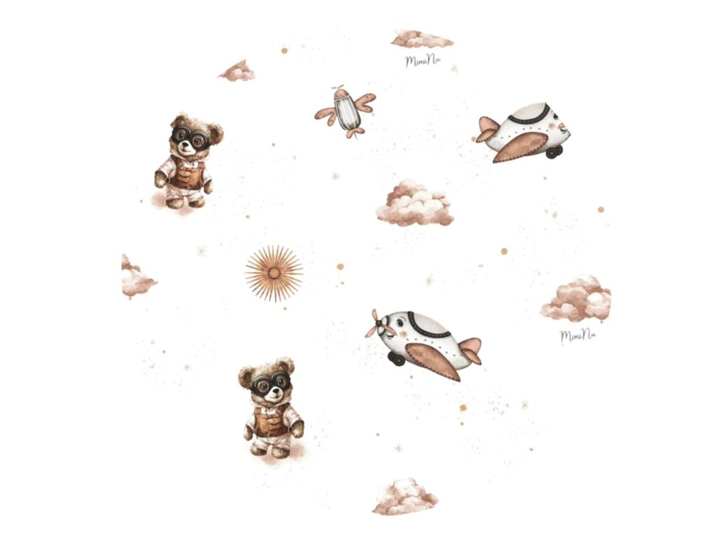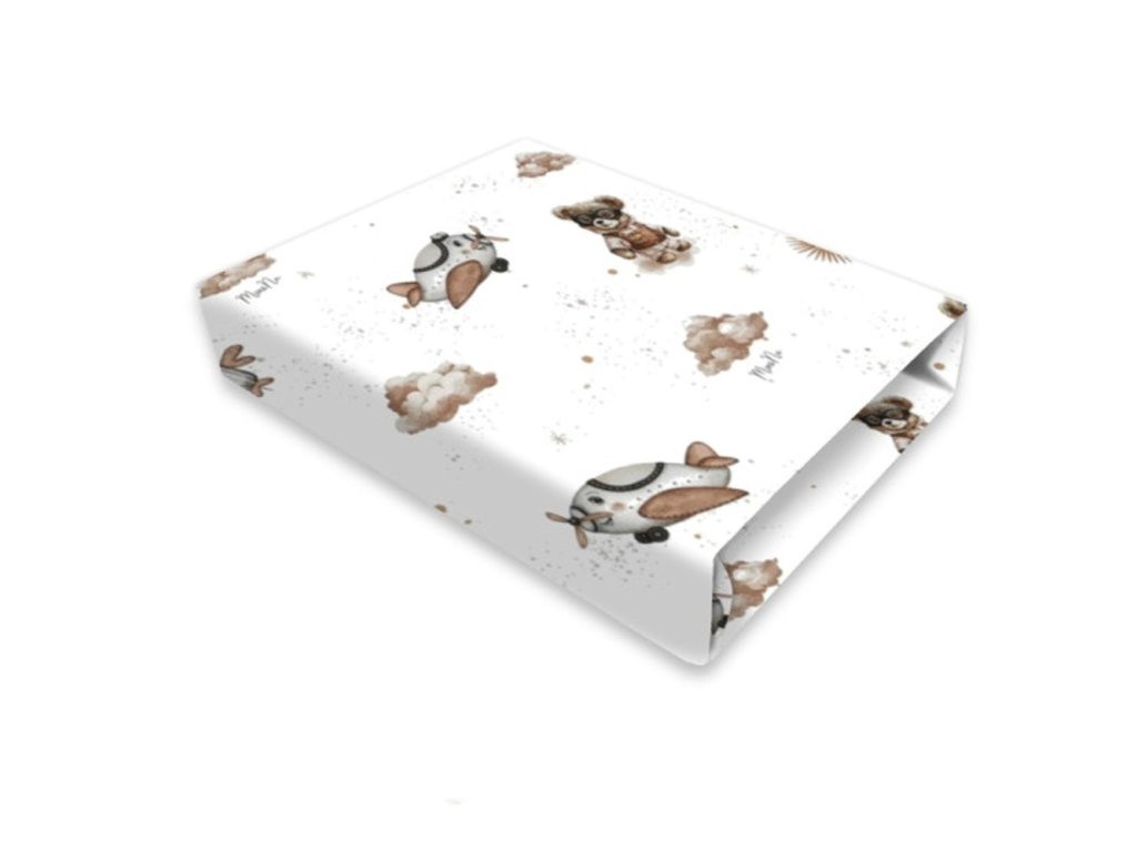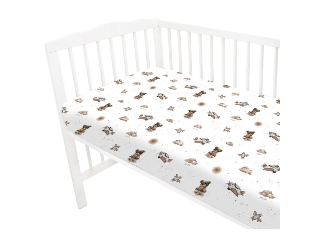 Prostěradlo do postýlky 120x60cm, bavlna, Méďa pilot - bílá, béžová