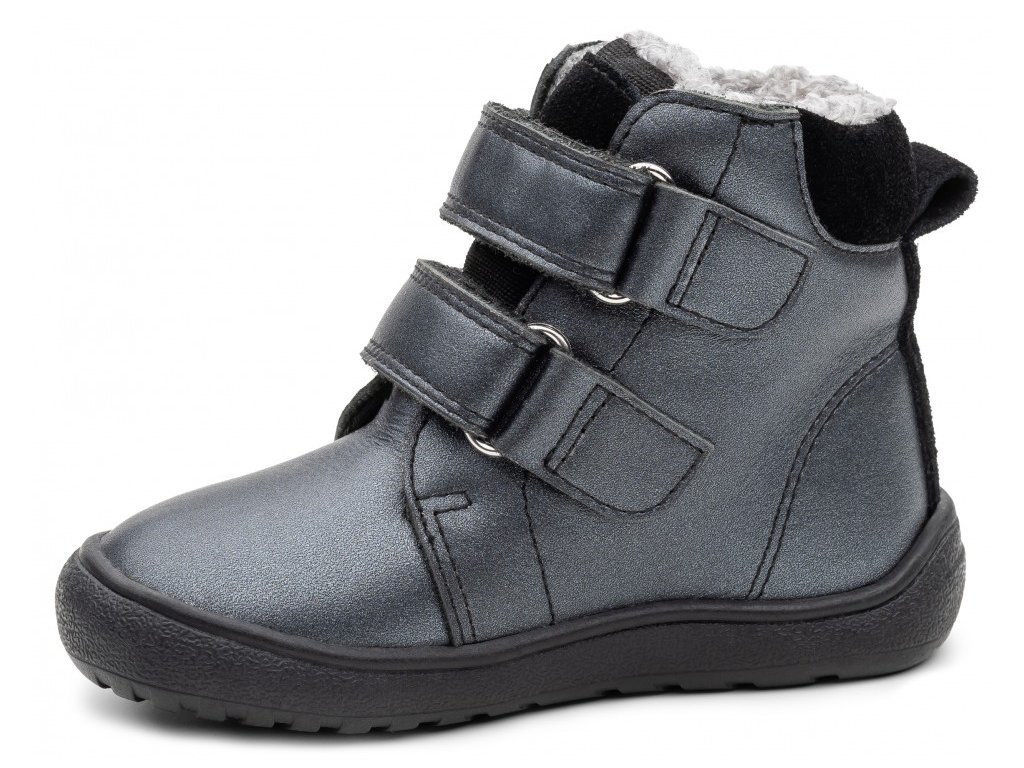 Dievčenské barefoot zimné topánky sú vyrobené z hladkej a brúsenej umývateľnej kože v perleťovej farbe alebo v čiernej farbe s perleťovým efektom. Membrána PROTEX účinne chráni nohy pred dažďom a vlhkosťou. Dva suché zipsy pevne fixujú topánku na nohe. Jazyk je vyrobený z textilného materiálu. Vo vnútri sa nachádza netvarovaná, vyberateľná flísová stielka a mäkká kožušinka pre pohodlie a teplo.
