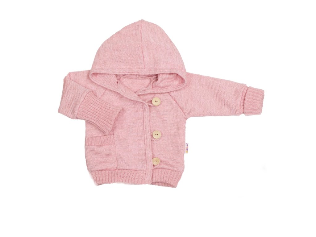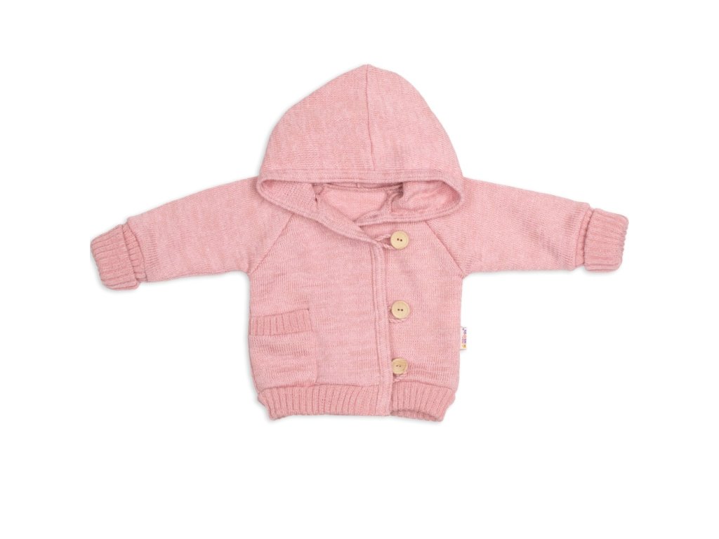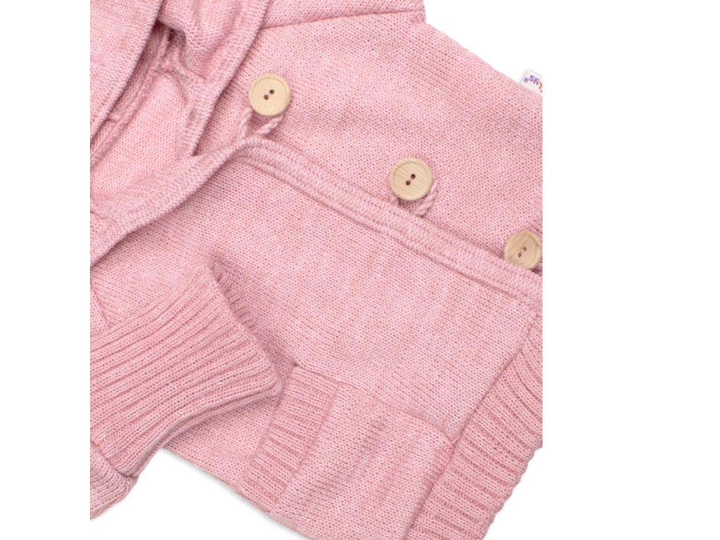 Rastúci pletený svetrík s kapucňou, zapínanie gombíkmi - púdr. růžový