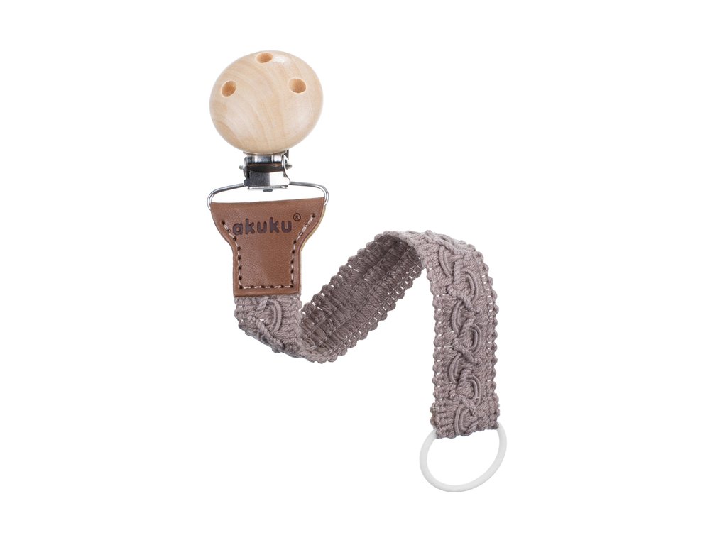 Retiazka na cumlík Akuku hnedá – bavlnená stužka s dreveným klipsom