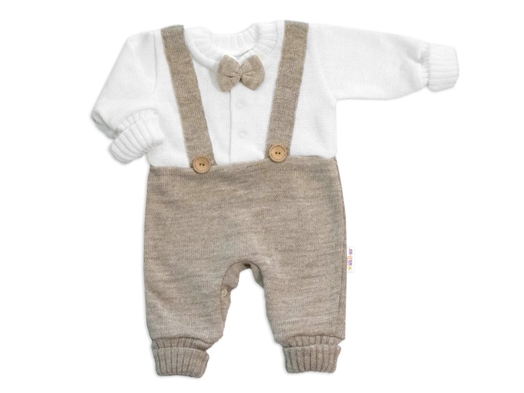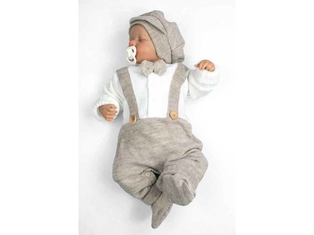 Rostoucí pletený overálek 3D Hand Made malý Elegán - béžový, bílá