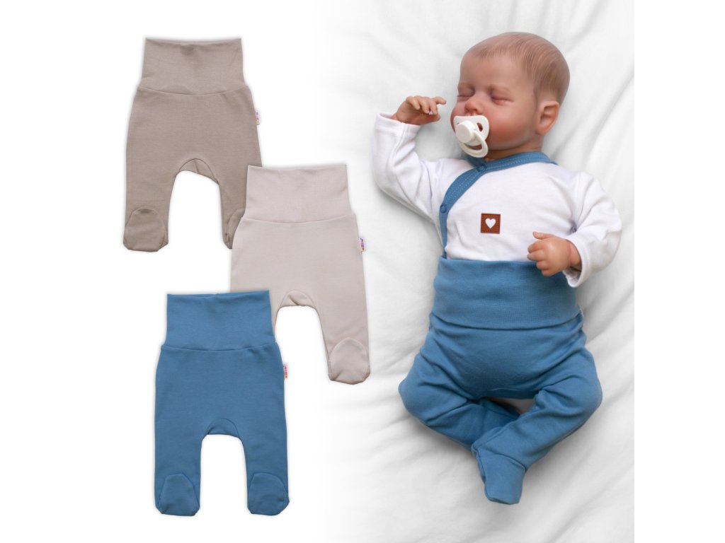 Baby Nellys ČR, Veľ. 50/56, 3D - 3x polodupačky, Farba: modrá/béžová/taupe