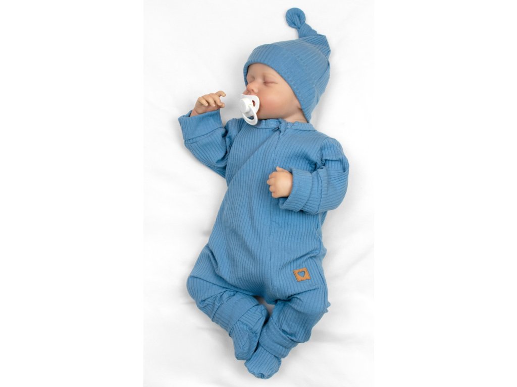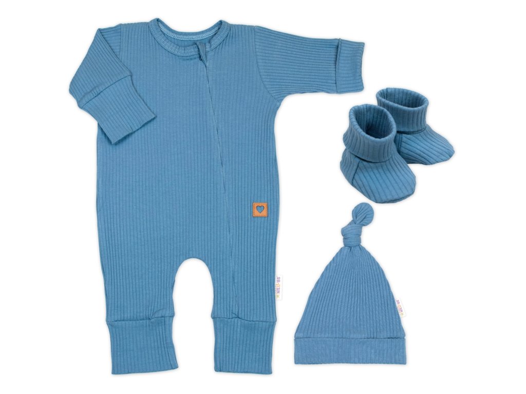 Rostoucí žebrovaný overálek, čepička a botičky, 3D, Nature -jeans