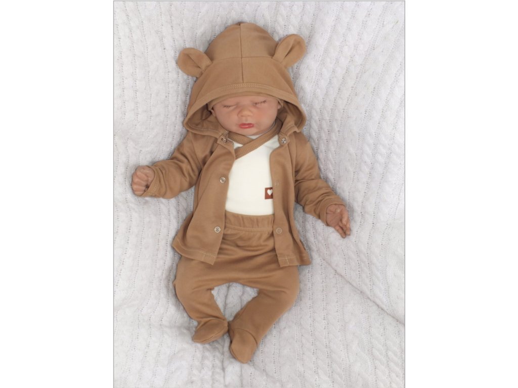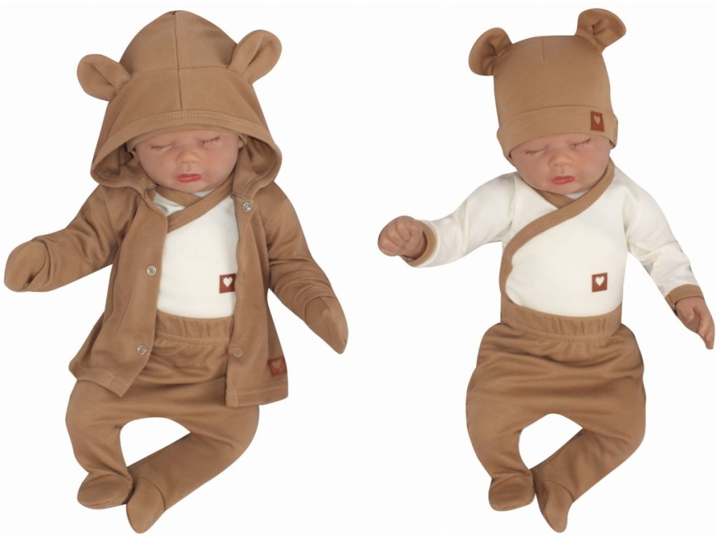 Sada do porodnice 5D, body, polodupačky, kabátek, čepička, rukavičky - hnědá