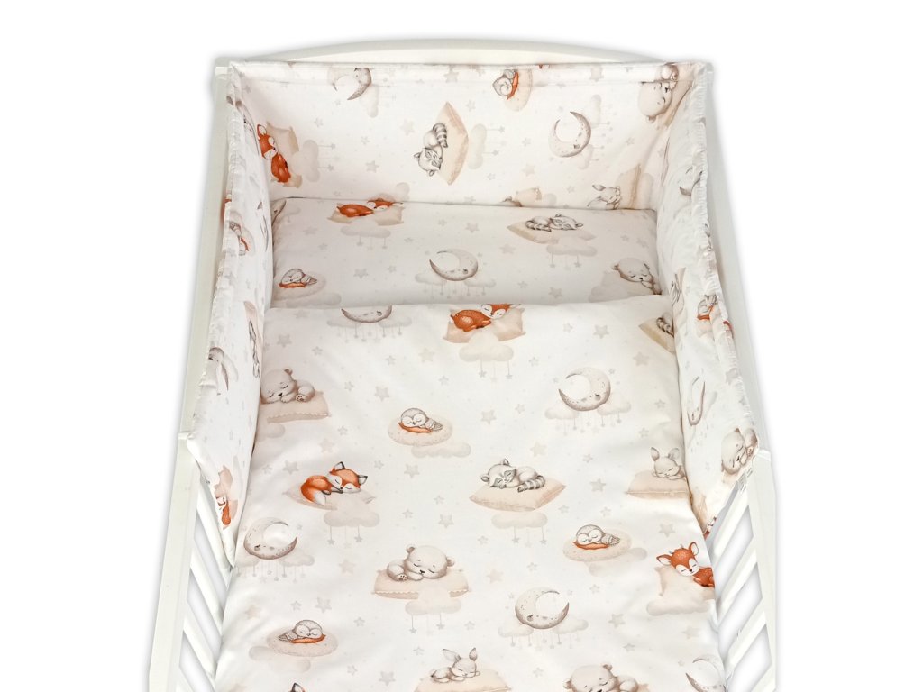 Sada do postýlky 3D, mantinel a povlečení - Na obláčku, béžová, bílá