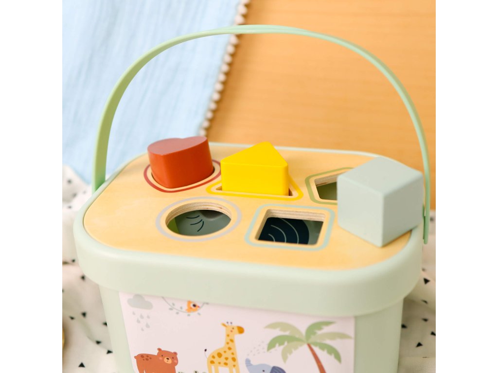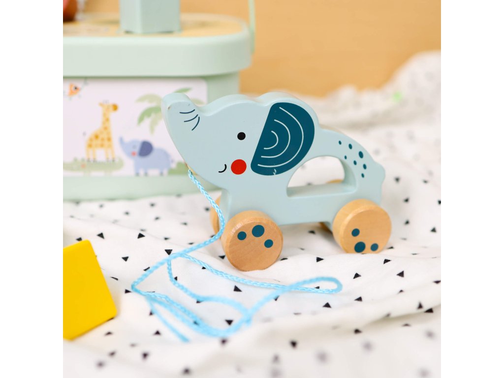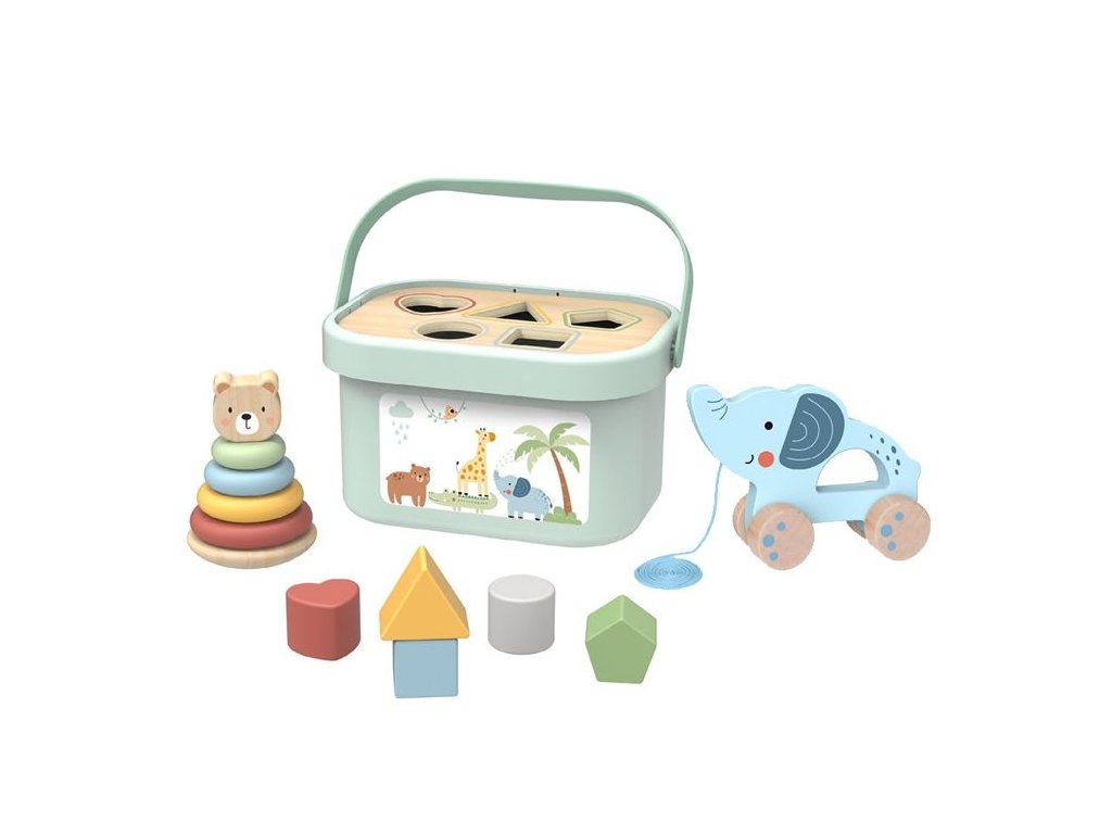 Sada hračiek 3 v 1 Pastel 3 hračky od 1 roka v jednom boxe Súprava drevených hračiek vo vedierku v pastelových farbách od Tooky Toy zabaví všetky deti približne od jedného roka. Obsahuje 3 zábavné a vzdelávacie hračky, ktoré podporujú zdravý psychomotorický rozvoj vášho dieťaťa, rozvíja aj jeho zmyslové vnímanie, logické myslenie, koordináciu ruka-oko, jemnú motoriku a ďalšie. A vás poteší, že po hre zase všetko upratá do vedierka. Ten si môžete so sebou zobrať aj na cesty!Box pre deti od 1 roku 3 v 1 obsahuje: drevená pyramída Nasadzovacie krúžky Macko 6 ks,drevená ťahacia hračka Slon,drevená Vkladačka tvary 5 ks + veko boxu v podobe vkladačky.Sada hračiek podporuje rozvoj detí Vďaka tomuto boxu 3 v 1 nebudete kupovať zbytočne veľa nevhodných či plastových hračiek. Drevené vzdelávacie hračky Tooky Toy sú vyrábané s ohľadom na životné prostredie z dreva z udržateľného lesníctva a ďalších bezpečných materiálov. Farby sú netoxické a úplne bezpečné. Súprava hračiek 3 v 1 je vhodná ako darček k 1 roku.