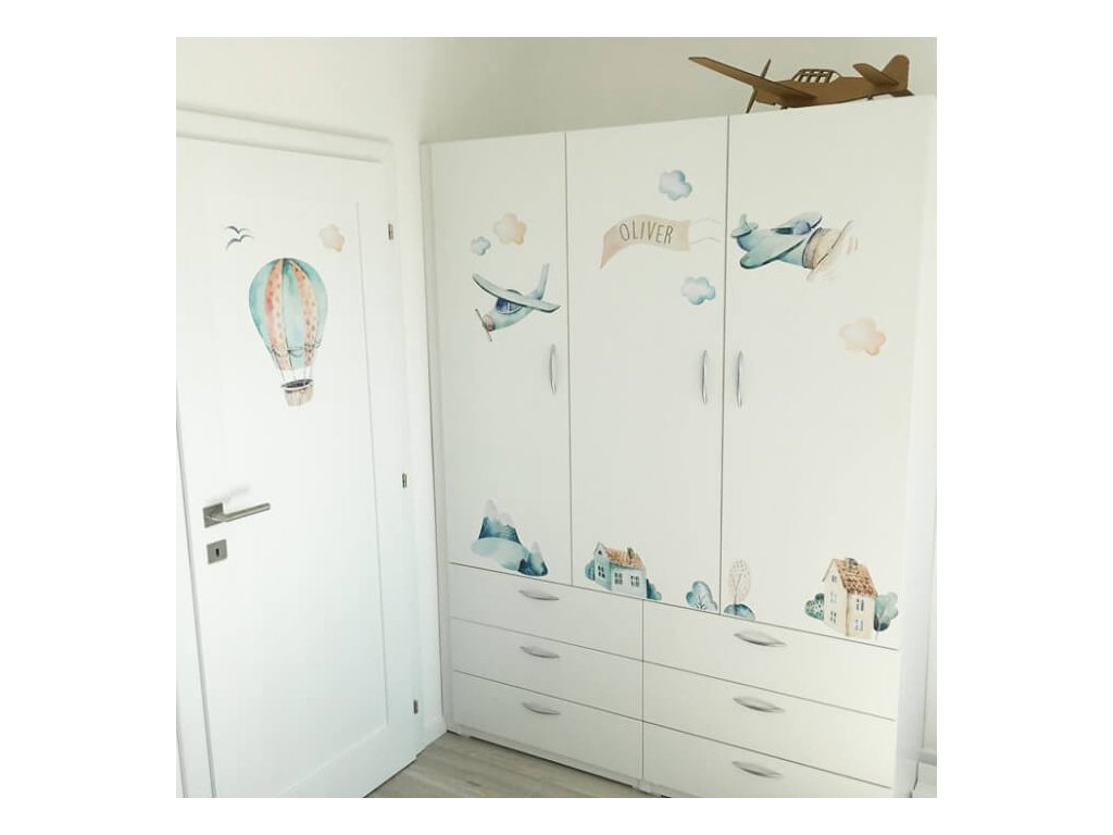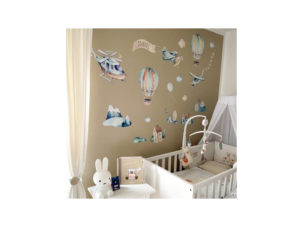 Samolepiace tapety na stenu Lietadlá a balóny s menom