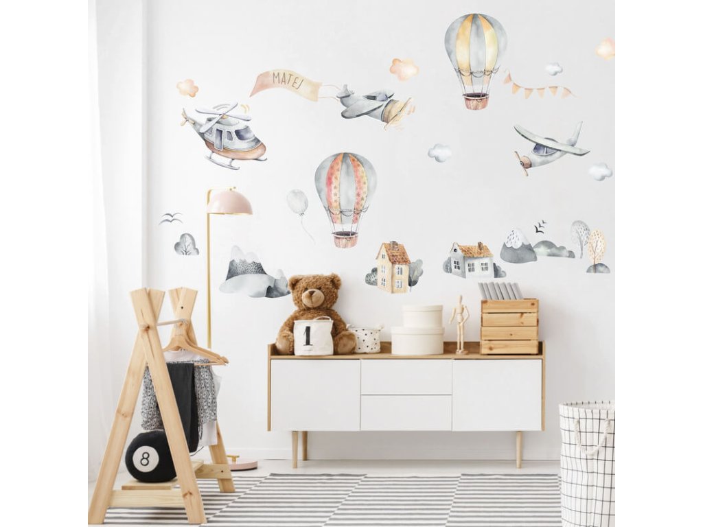 Samolepiace tapety na stenu - Lietadlá s menom v šedej farbe