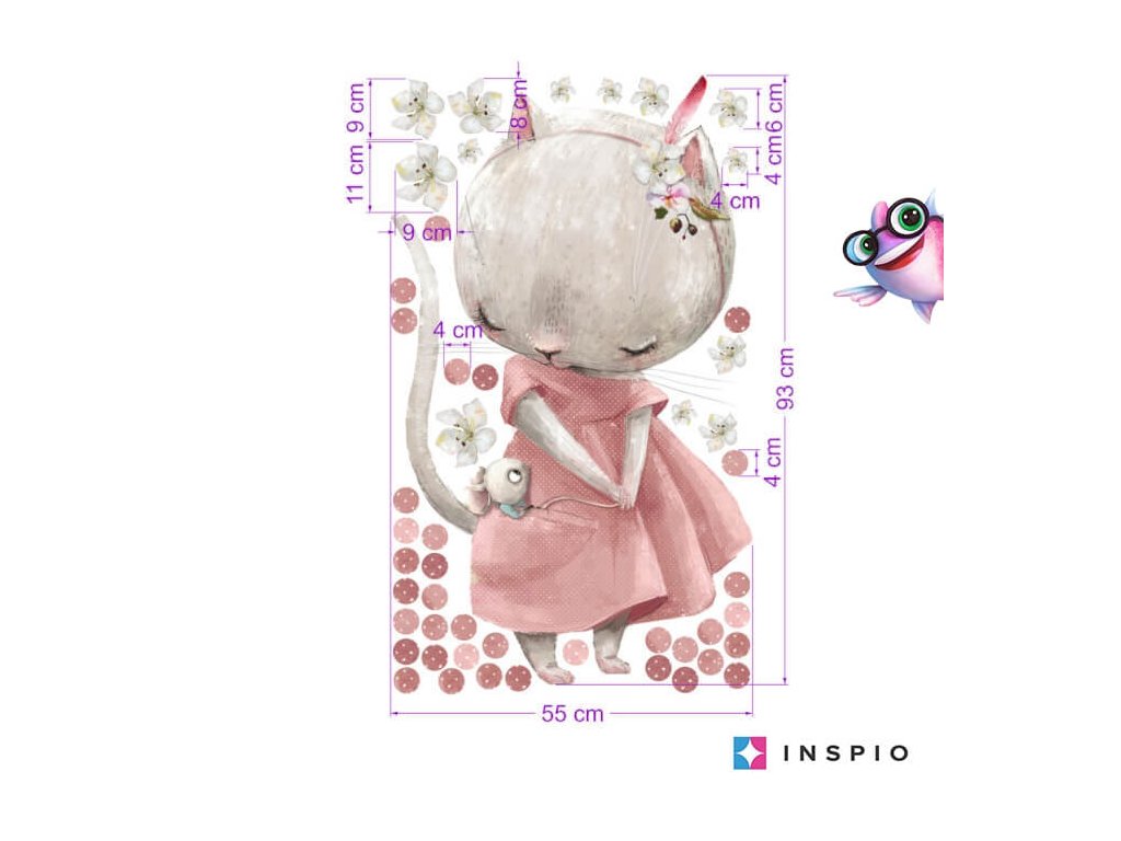 Hľadáte nálepku na stenu pre dievčatko? Pozrite si INSPIO nálepku s rozkošnou mačičkou a jemnými bodkami. Textilná nálepka do detskej izby.