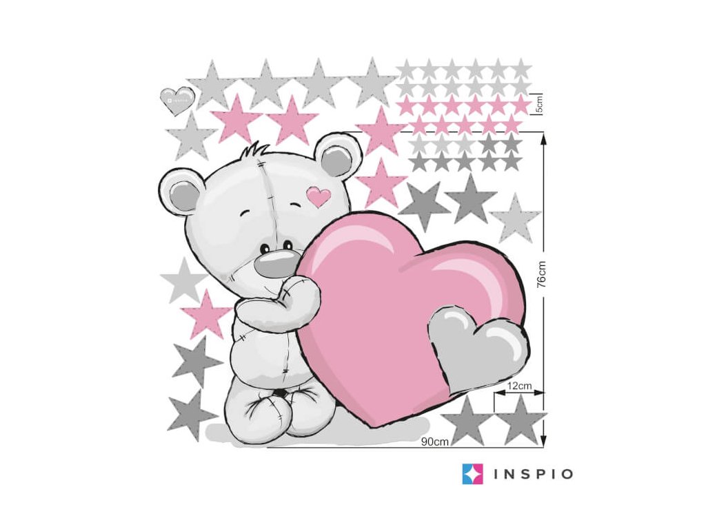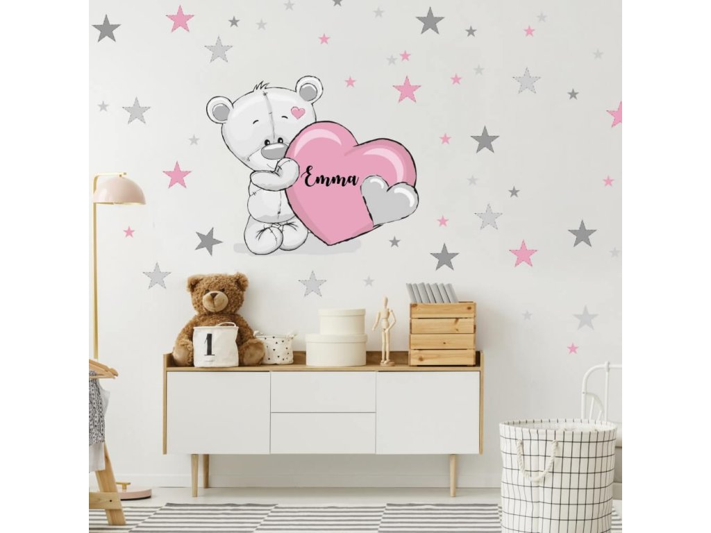 Samolepka pre dievčatá - Macko s ružovým srdiečkom a menom