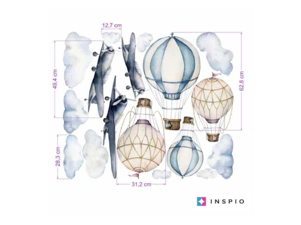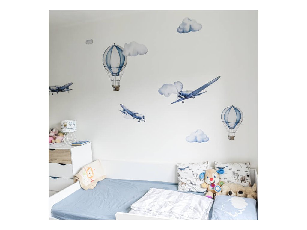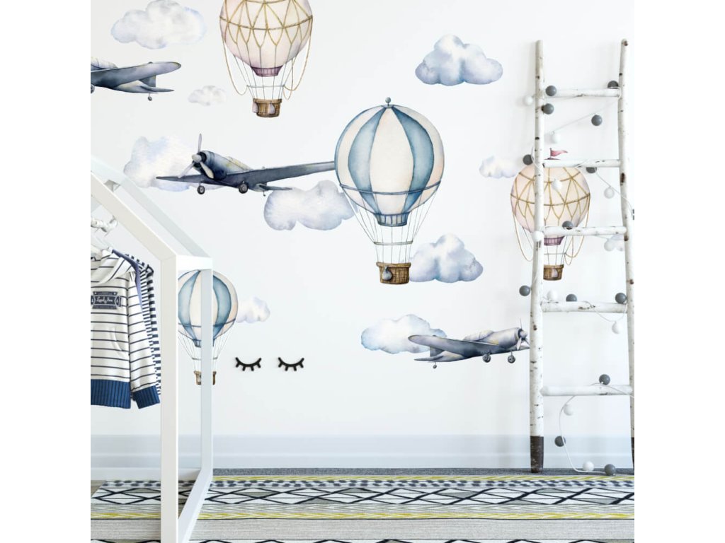Samolepky na stenu pre deti - Akvarelové lietadlá a balóny