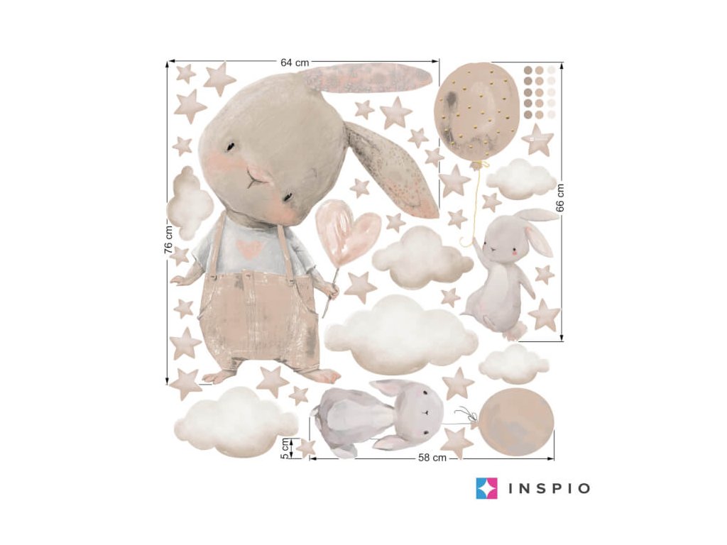 INSPIO nálepky pre detičky - roztomilé zajačiky v akvarelovom prevedení s balónmi, menom a hviezdičkami.