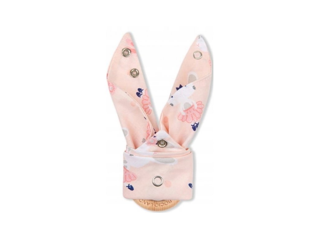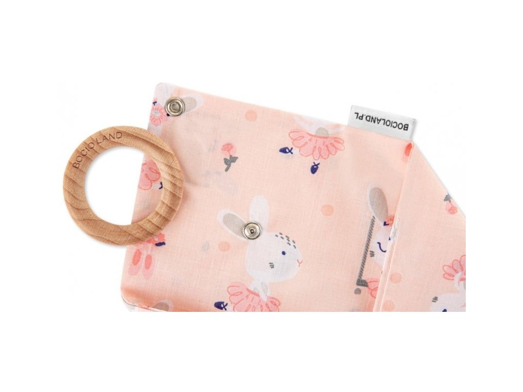Šatka s dreveným hryzátkom svojim tvarom a spôsobom výroby plní rôzne funkcie - ako podbradník, ktorý zakrýva oblečenie bábätka pri kŕmení, tak šatka chrániaca krk, ktorá je súčasťou oblečenia bábätka. Výrobok je vyrobený z dvoch vrstiev 100% bavlneného materiálu, navyše má hryzátko vyrobené z javora.