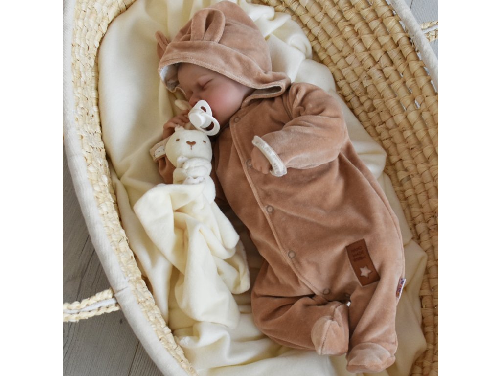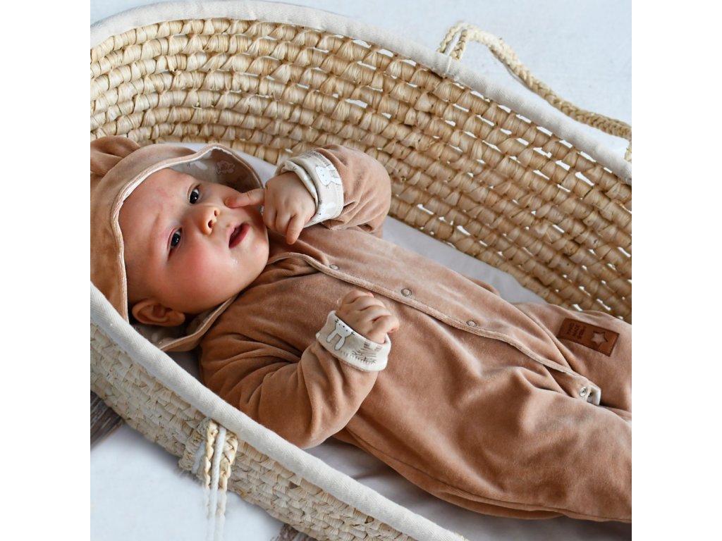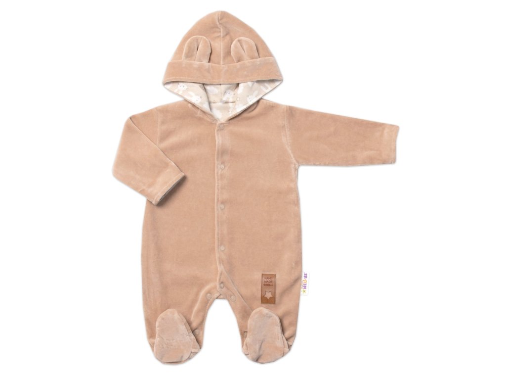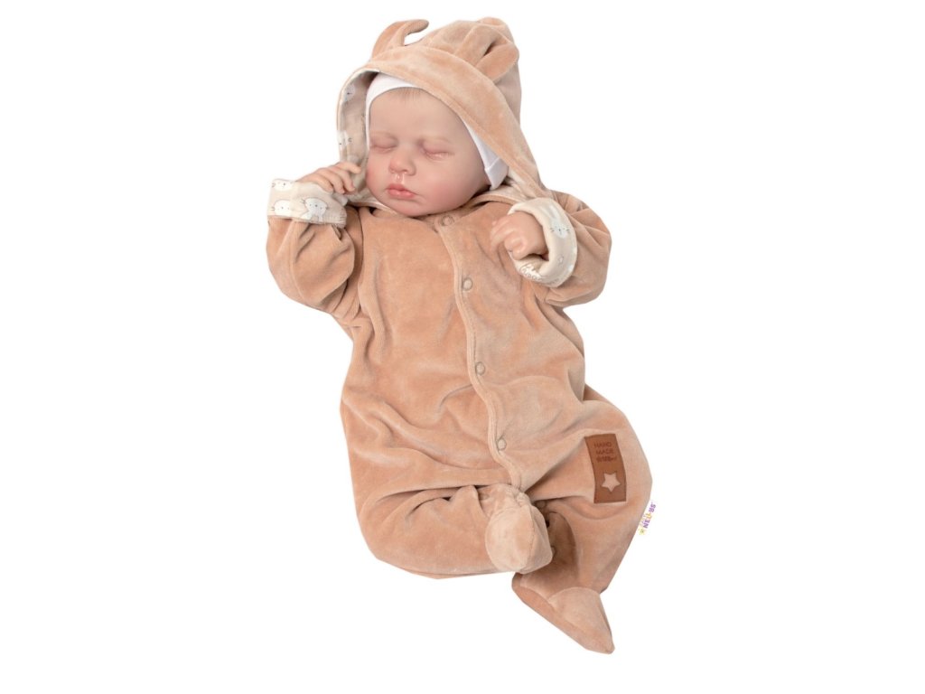 Semiškový, velurový overal s kapucí Baby Nellys New Bunny, hnědý