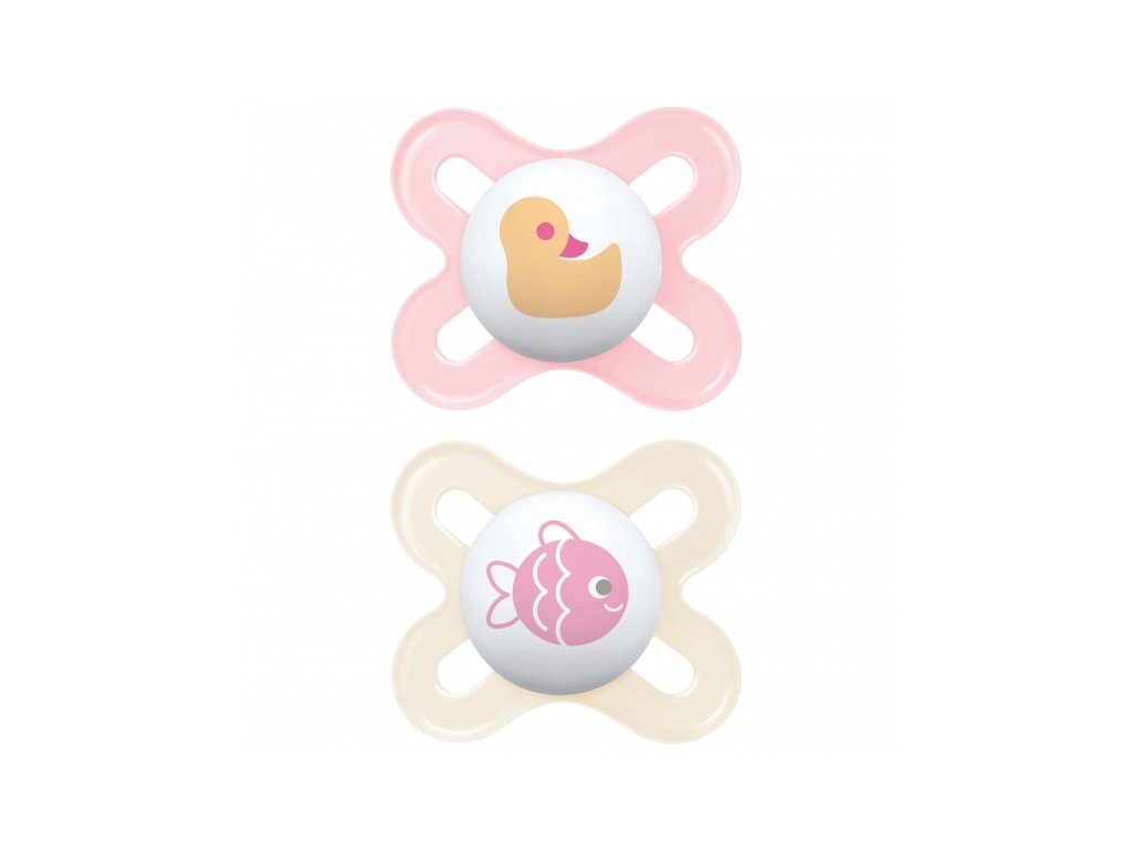 Silikónový cumlík Štart s krabičkou, Vodný svet, ružová/smotanová - 2 ks, 0-2m