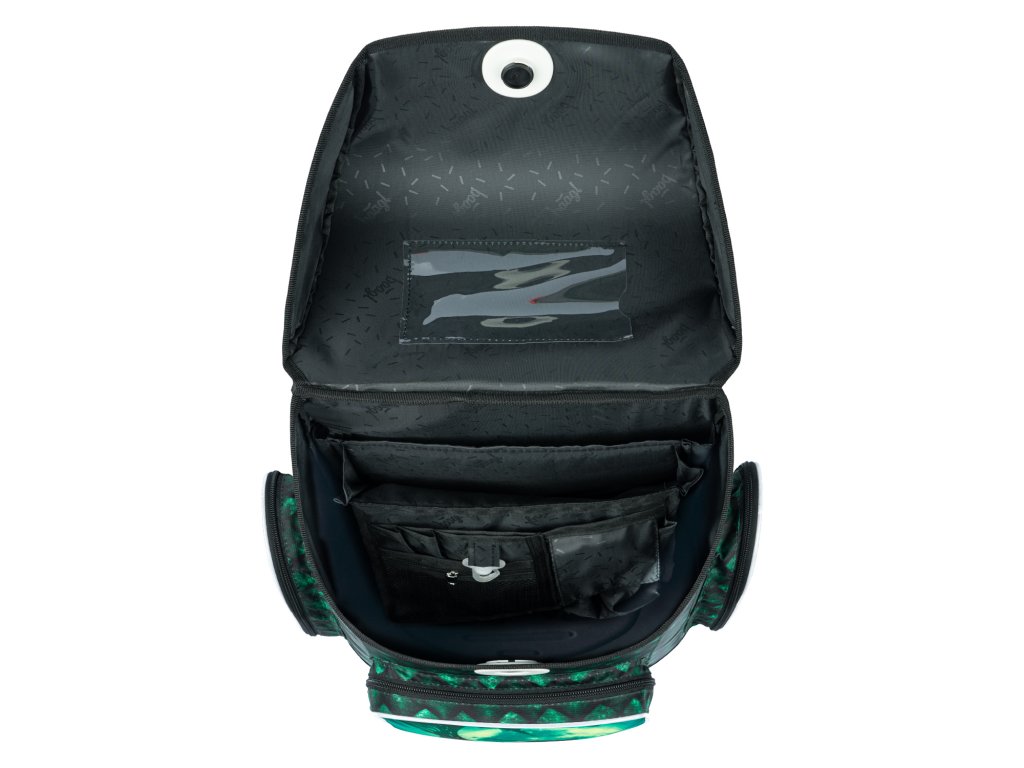 • Vnútri aktovky je priehľadná kapsa s rozvrhom a vnútorný organizér umožňujúci rovnomerné rozloženie hmotnosti.